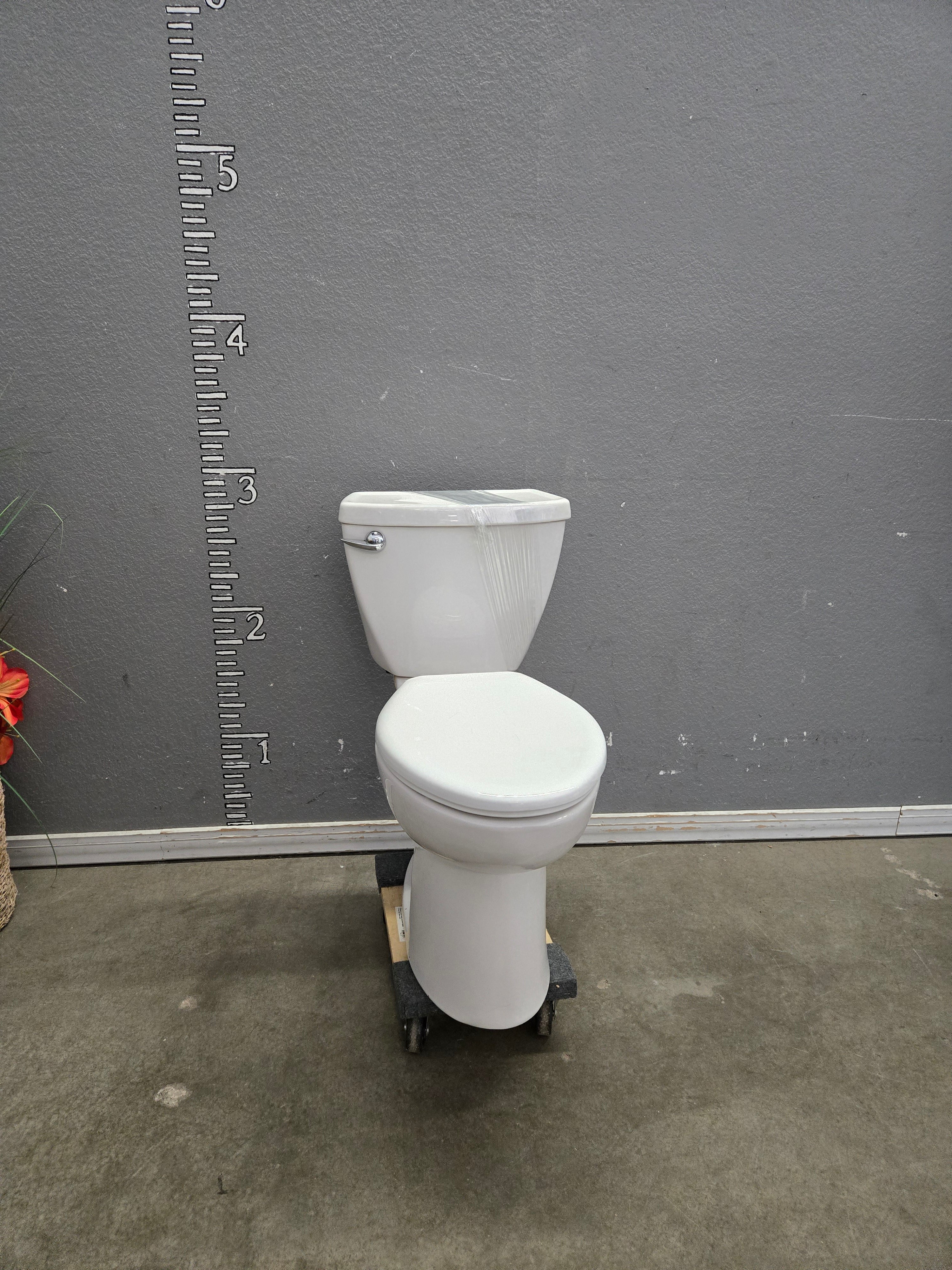 This traditional white ceramic toilet features a sleek, glossy finish, ideal for any modern bathroom. The compact design ensures it fits seamlessly into bathrooms of various sizes. Approximate Size: 2.5 x 1.5 x 2.5