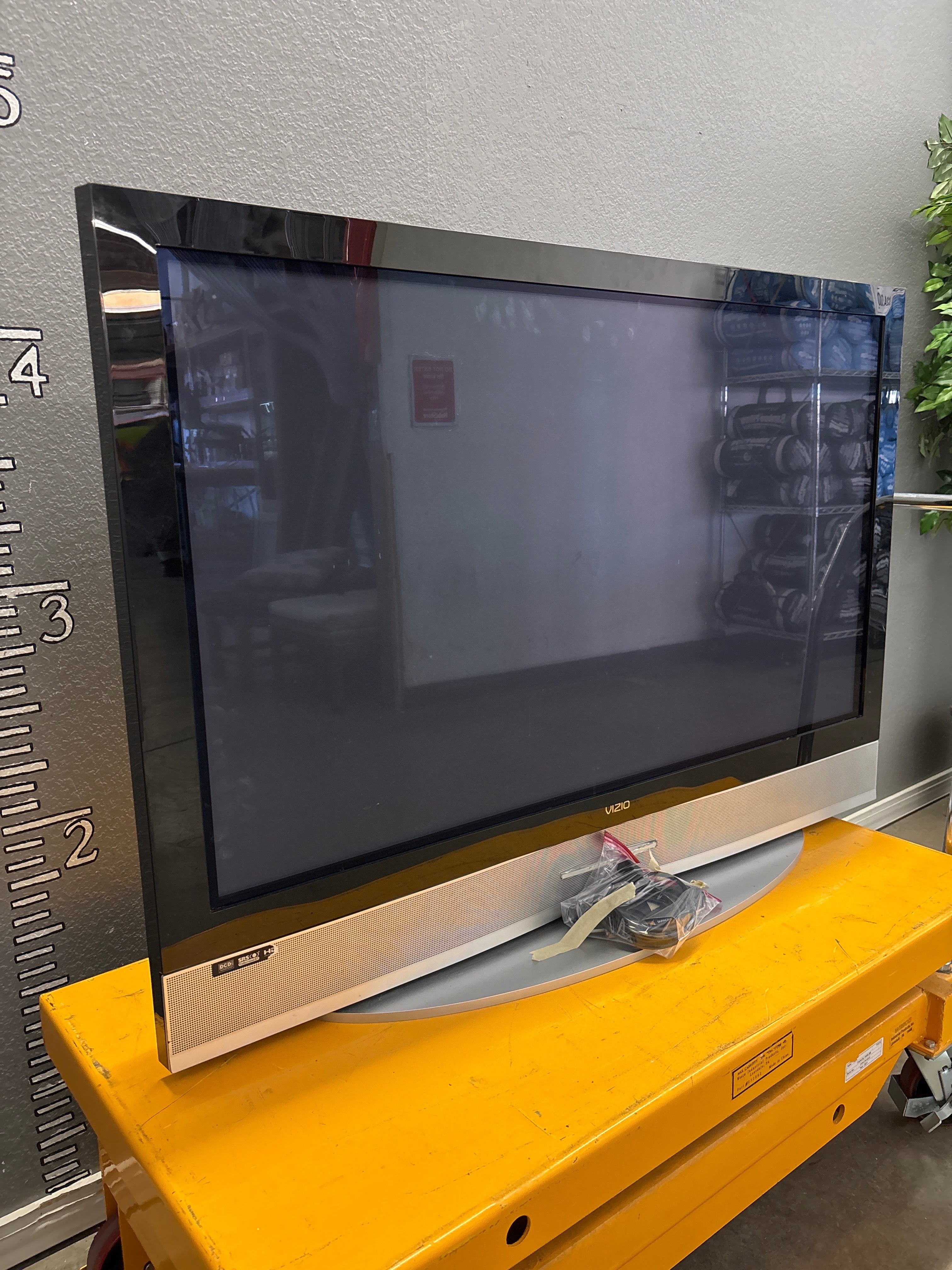 Sleek black finish with a silver base, this Vizio 42-inch flat screen TV offers a modern aesthetic perfect for any living room setup. Approximate Size: 2.5 x 3.5 x 0.5