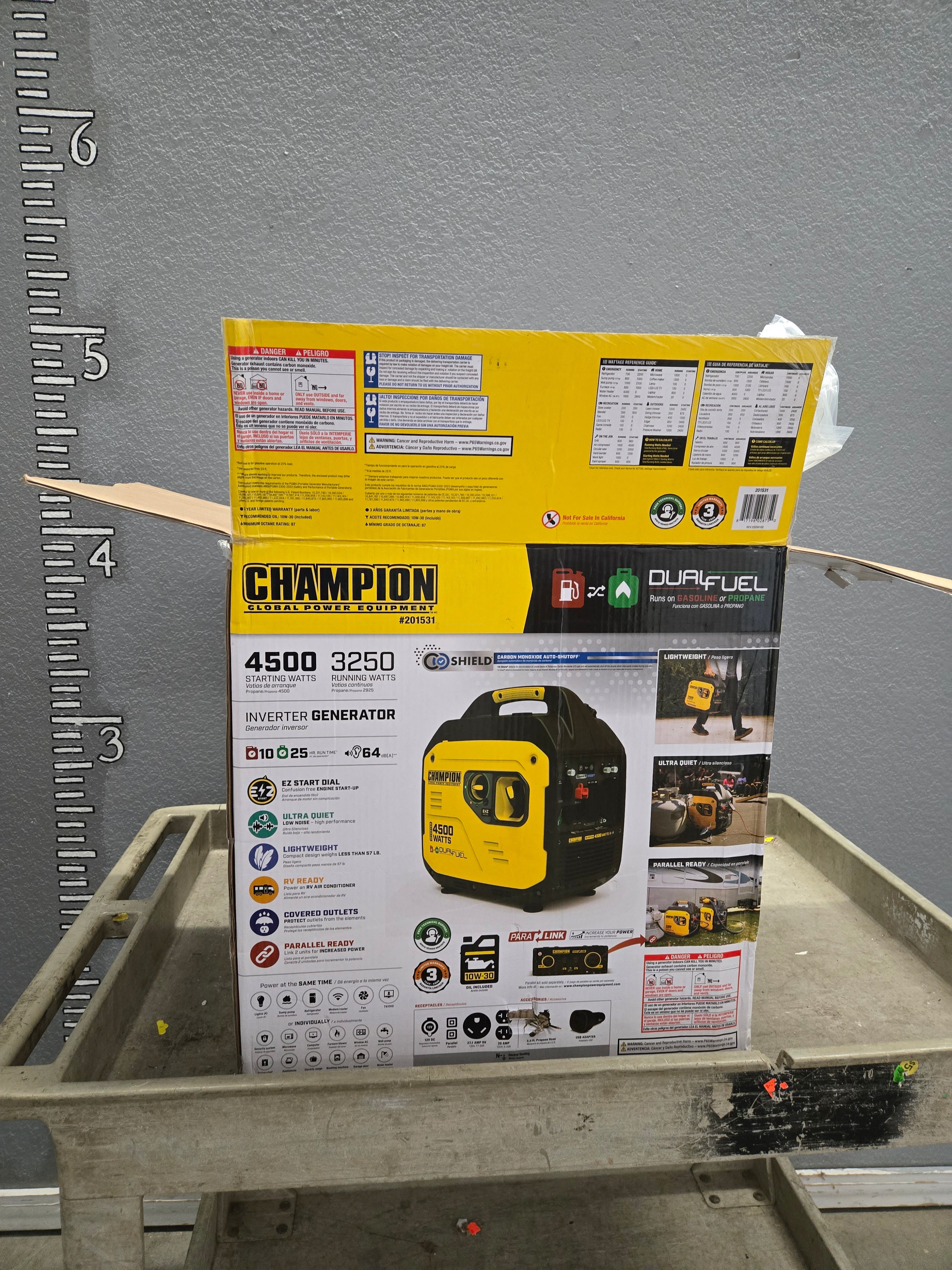 24746 NON-WORKING "AS-IS" Champion 4500 Dual Fuel Inverter Generator