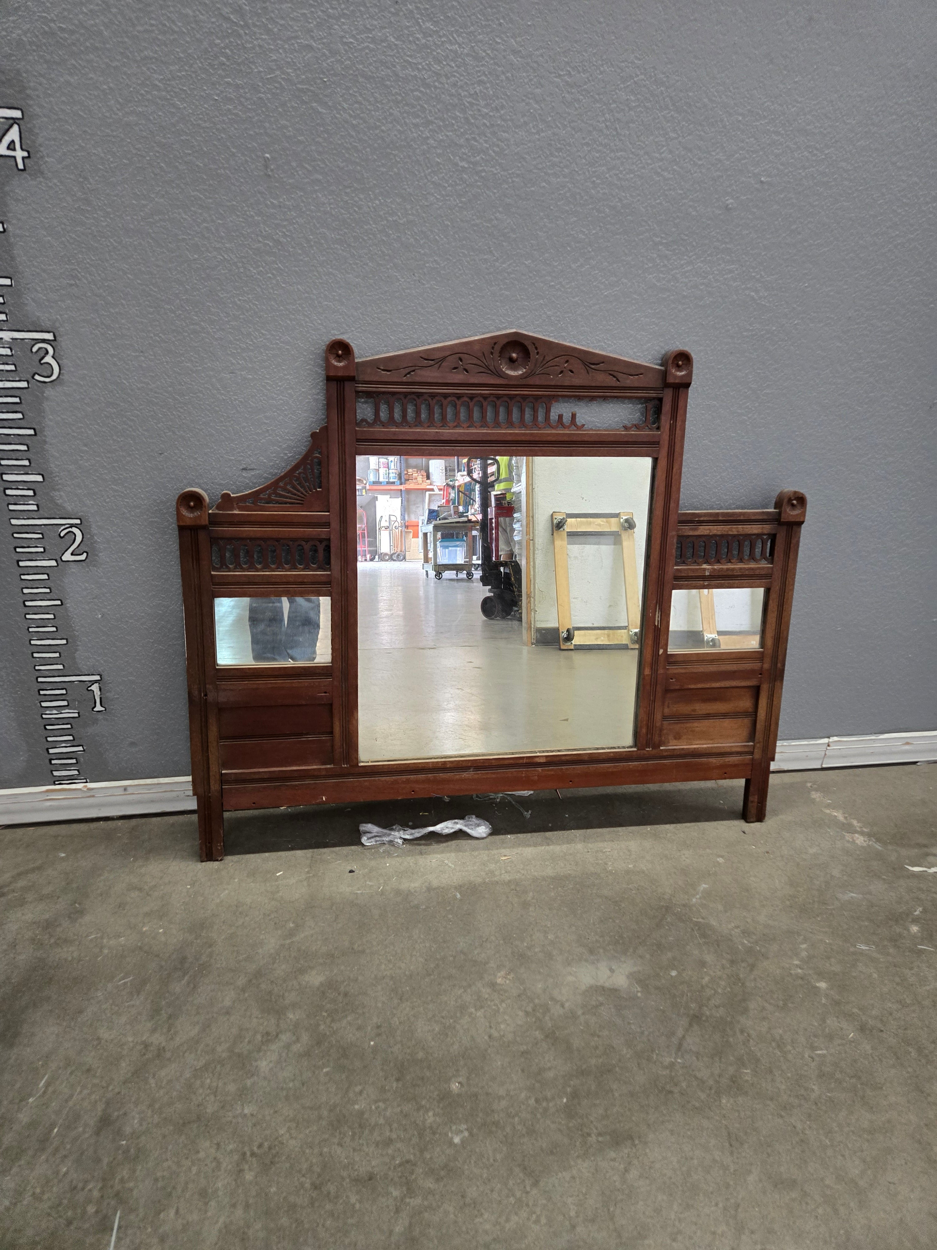 26643 Antique Wooden Frame Mirror with Decorative Accents