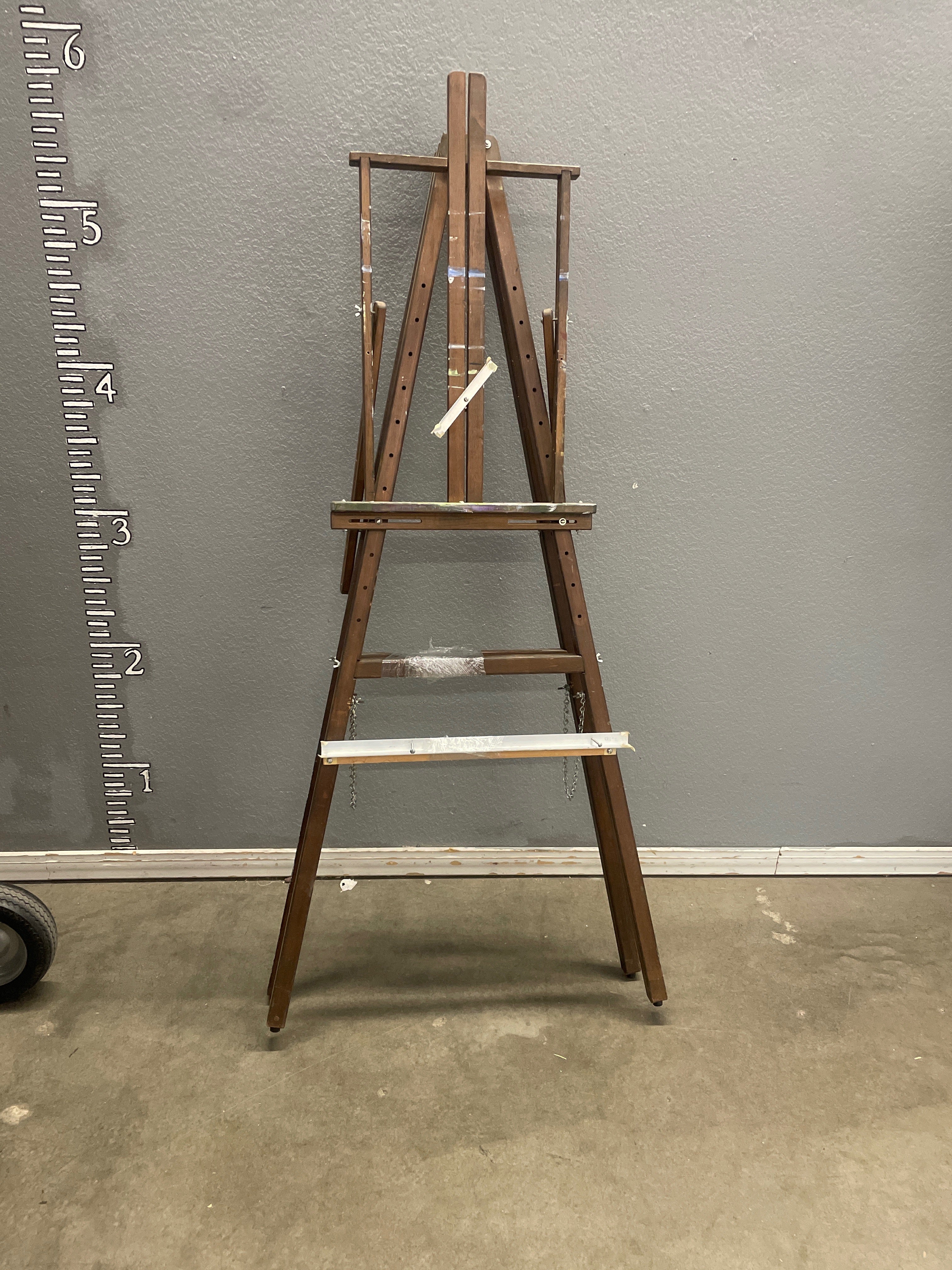 A sturdy wooden artist easel with a natural wood finish, perfect for supporting canvases during your creative endeavors. Approximate Size: 5 x 2 x 2