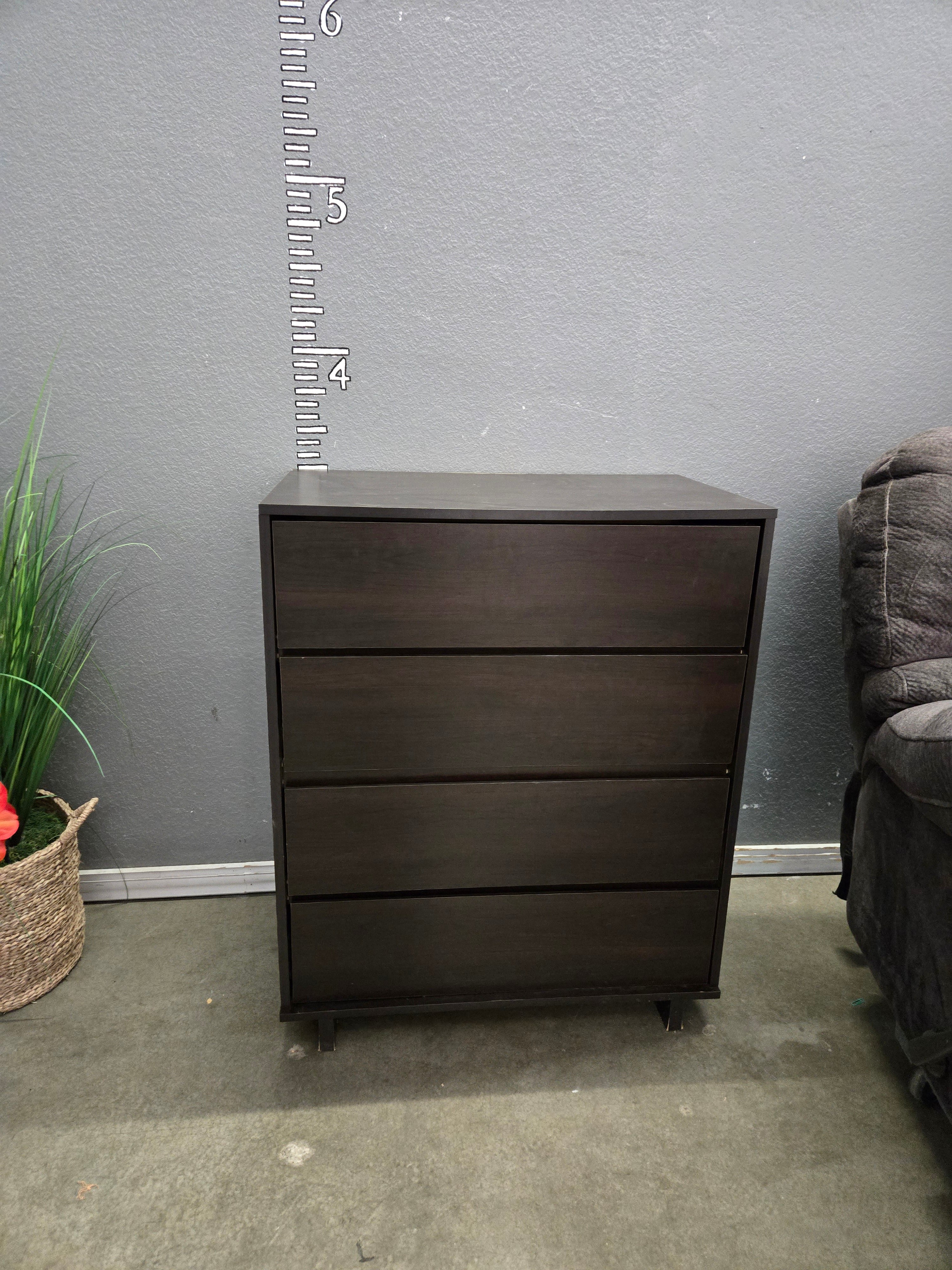 This sleek, modern chest features four spacious drawers, finished in a deep, rich dark wood tone. Perfect for adding storage and style to any room. Approximate Size: 3.5 x 2.5 x 1.5