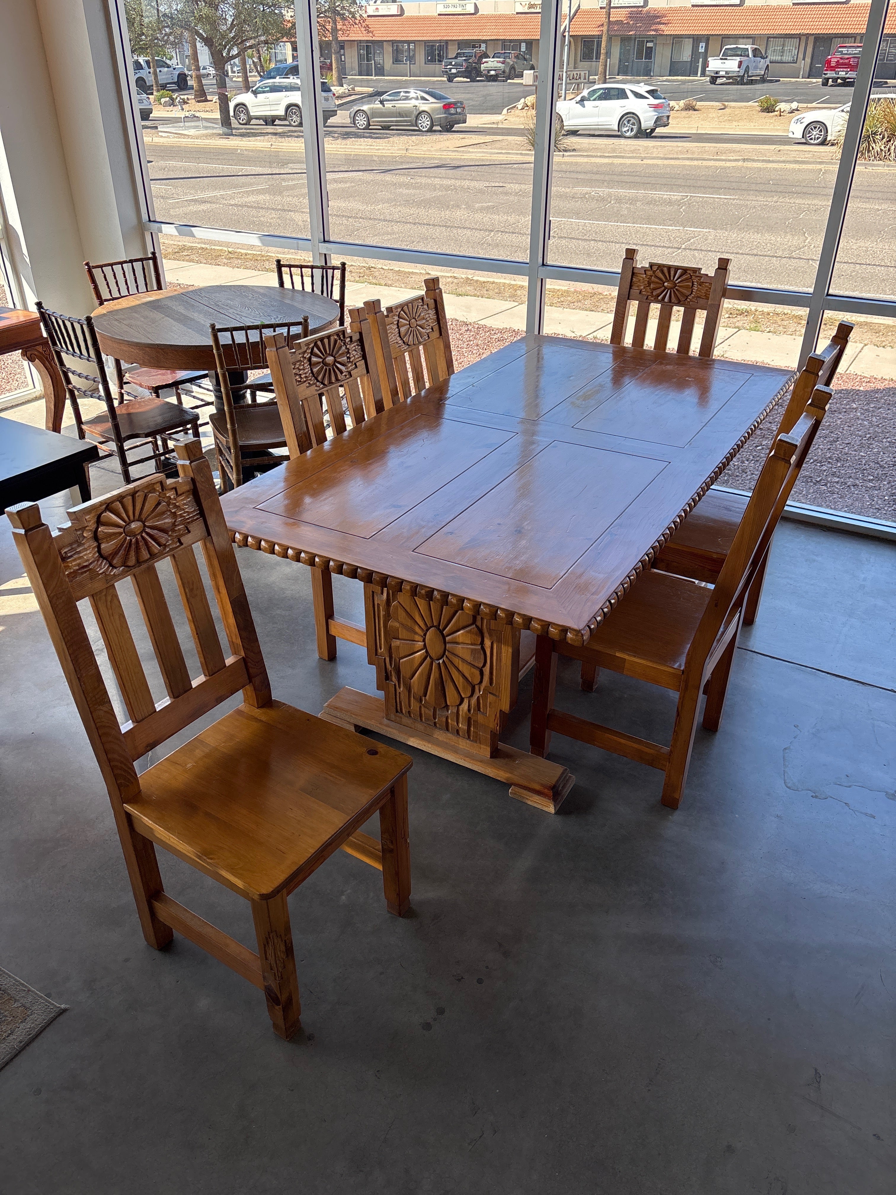 32139 Rustic Wooden Dining Set with Carved Chairs
