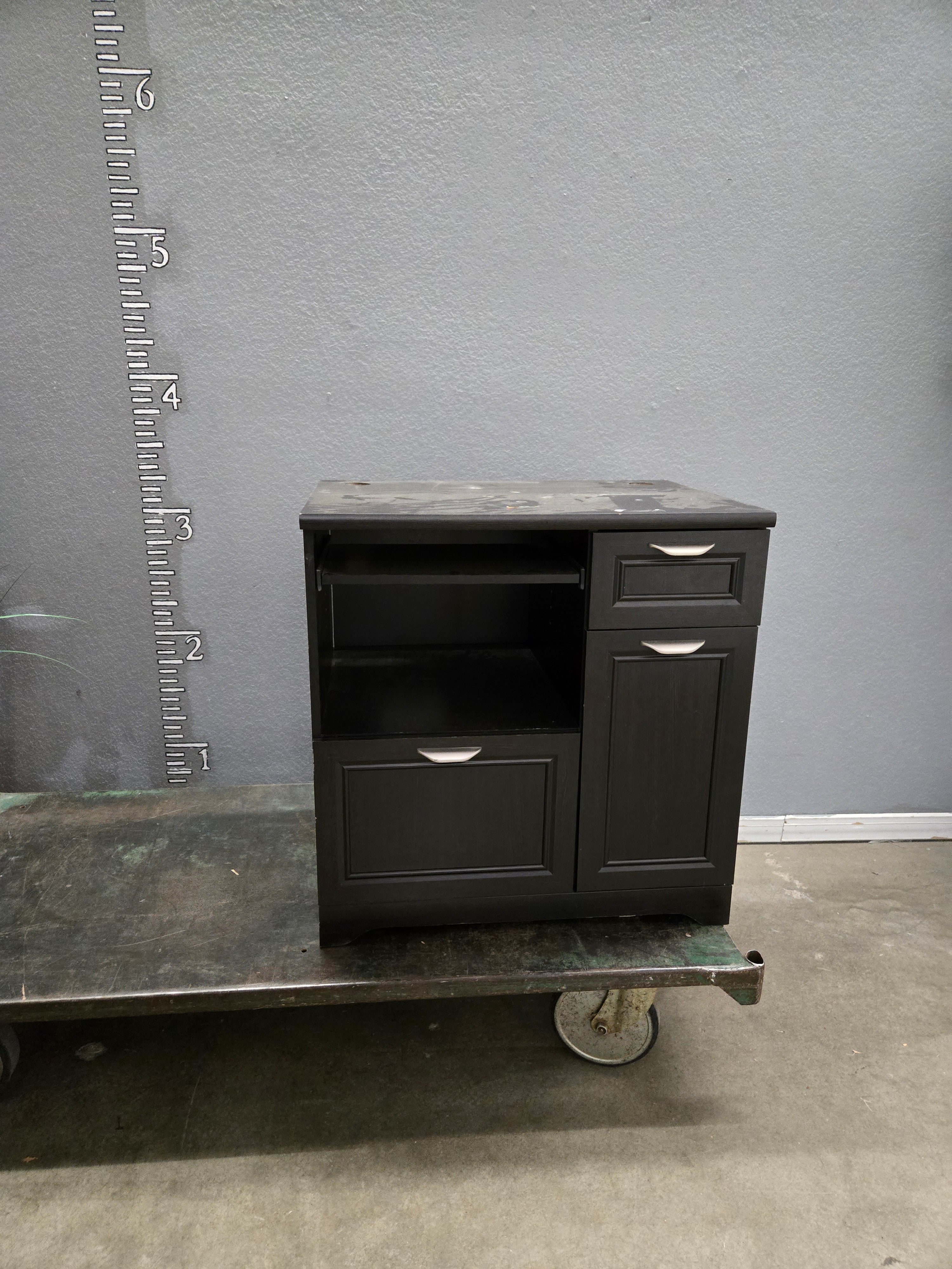 This sleek black cabinet features a matte finish for a modern touch. With one drawer and two doors, it offers ample storage space for essentials. Approximate Size: 3 x 2.5 x 1.5