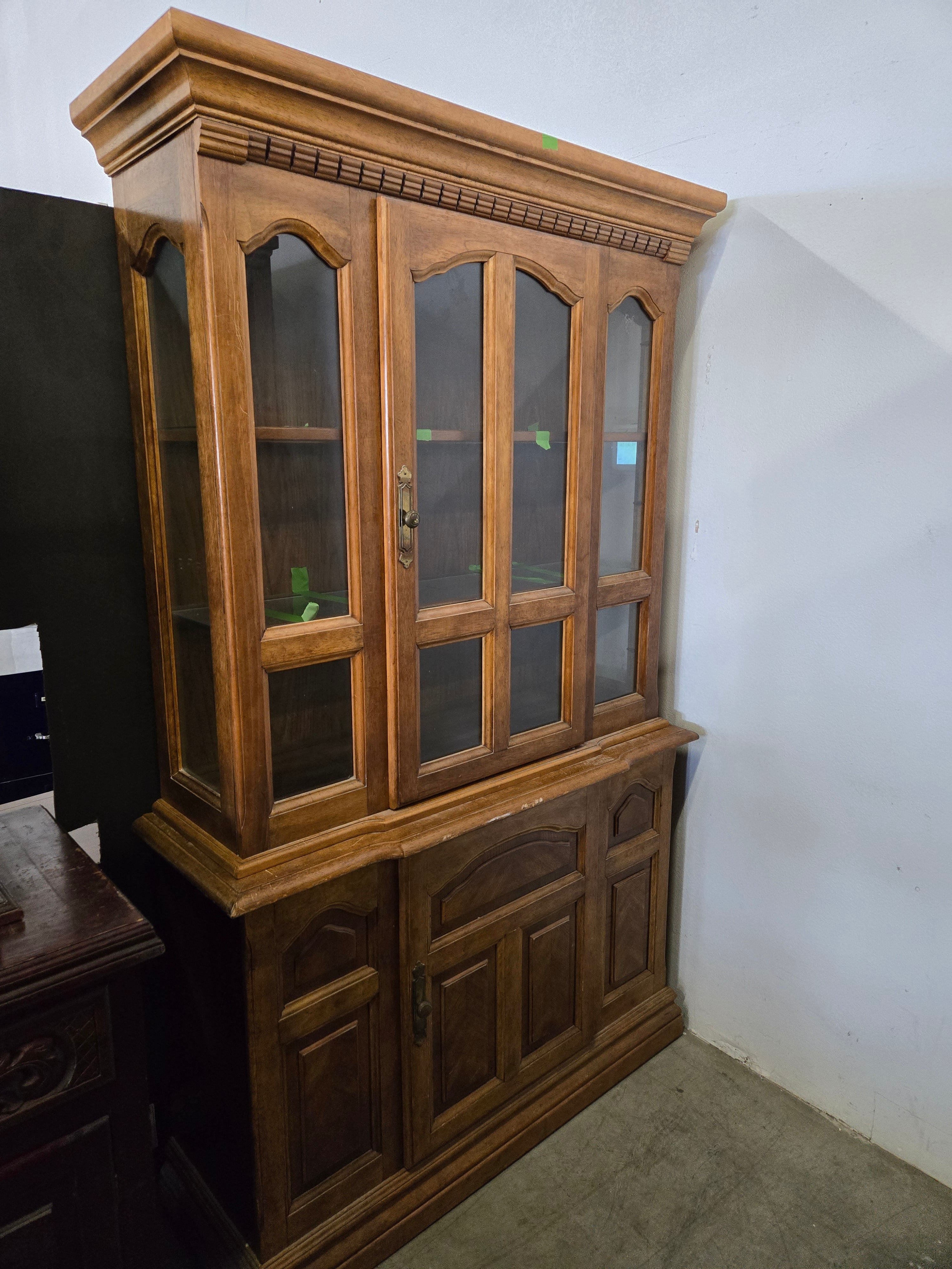 43459 Vintage Wood China Cabinet with Glass Doors