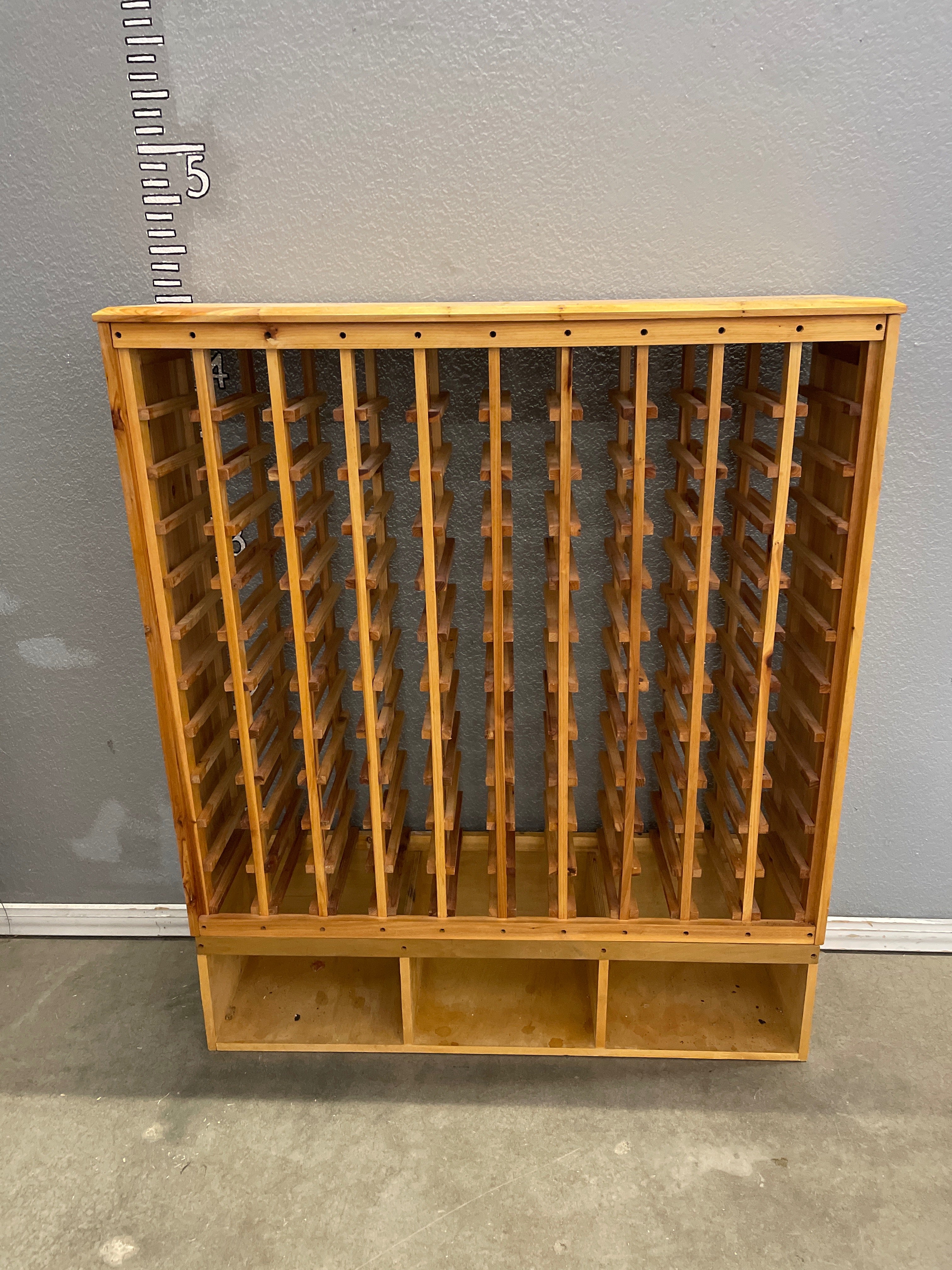 Natural finish wooden wine rack with a sturdy pine wood construction. Perfect for organizing and displaying your wine collection. Approximate Size: 4 x 3.5 x 1