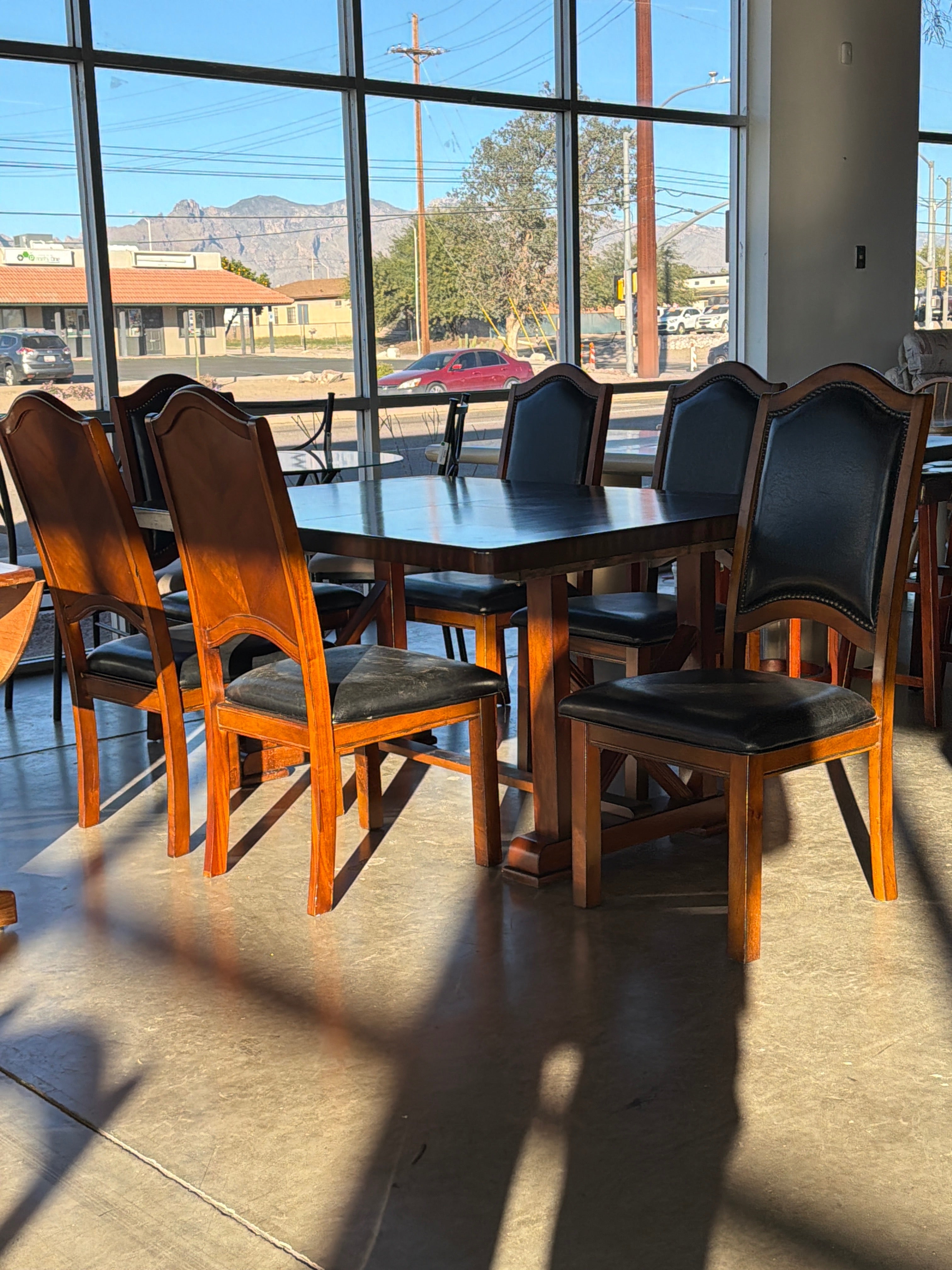 57255 Classic Wood Dining Set with Black Upholstered Chairs