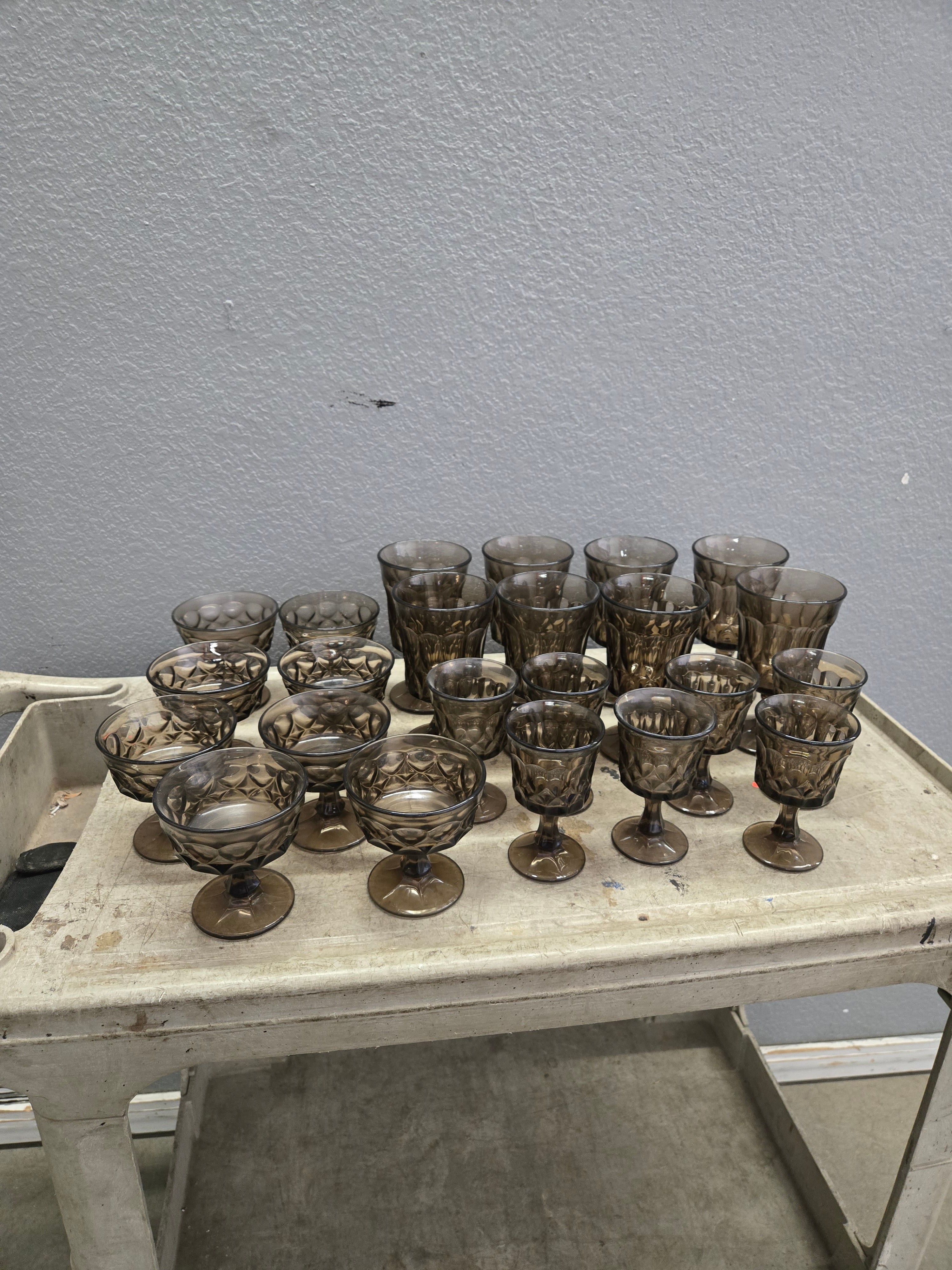 05192 Vintage Amber Glass Goblet 23 Piece Set