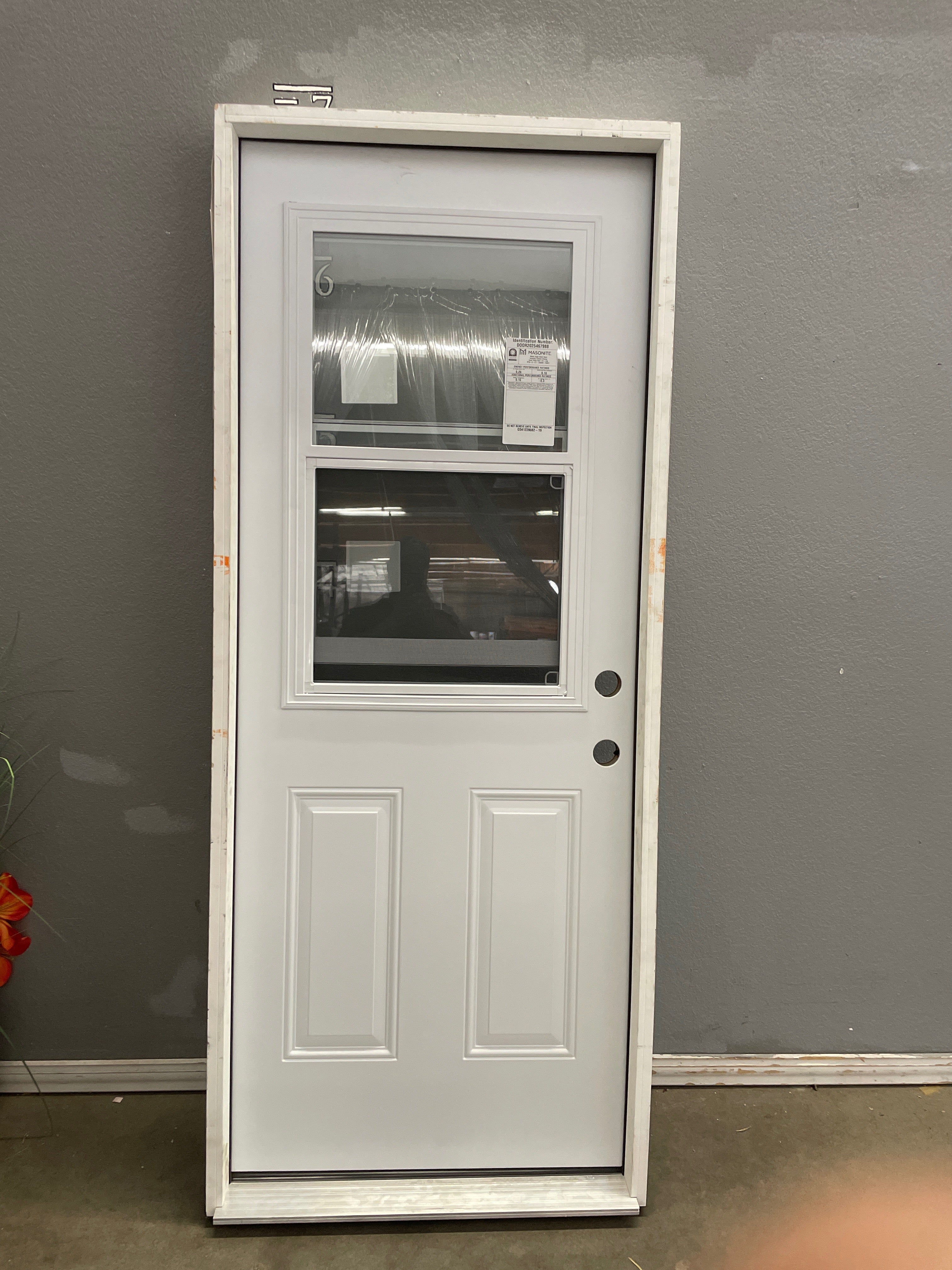 10914 White Steel 32x80 Entry Door with Glass Panel
