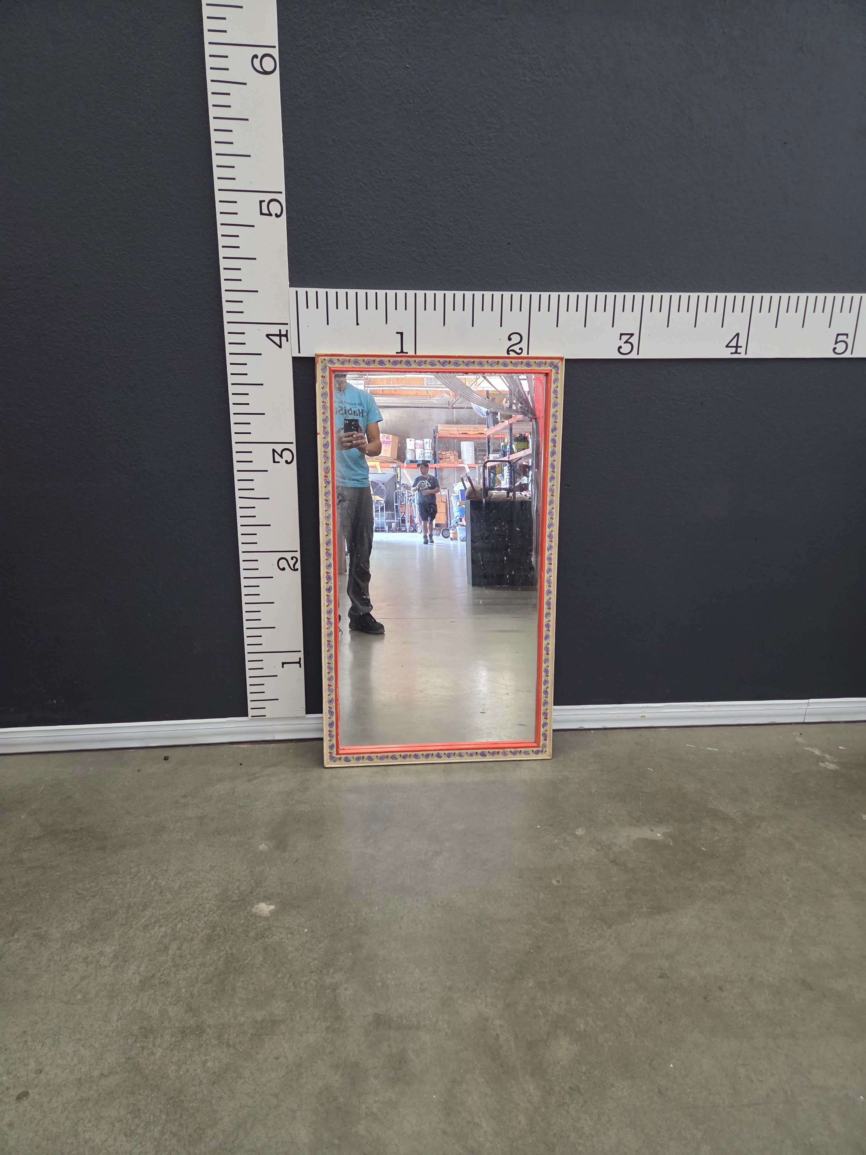 This charming mirror features a colorful and intricately designed frame with a vibrant finish. Perfect for adding a touch of elegance and artistry to any space. The mirror's frame is painted in a mix of colors, bringing a lively accent to your decor. Approximate Size: 3 x 1.5 x 0.2