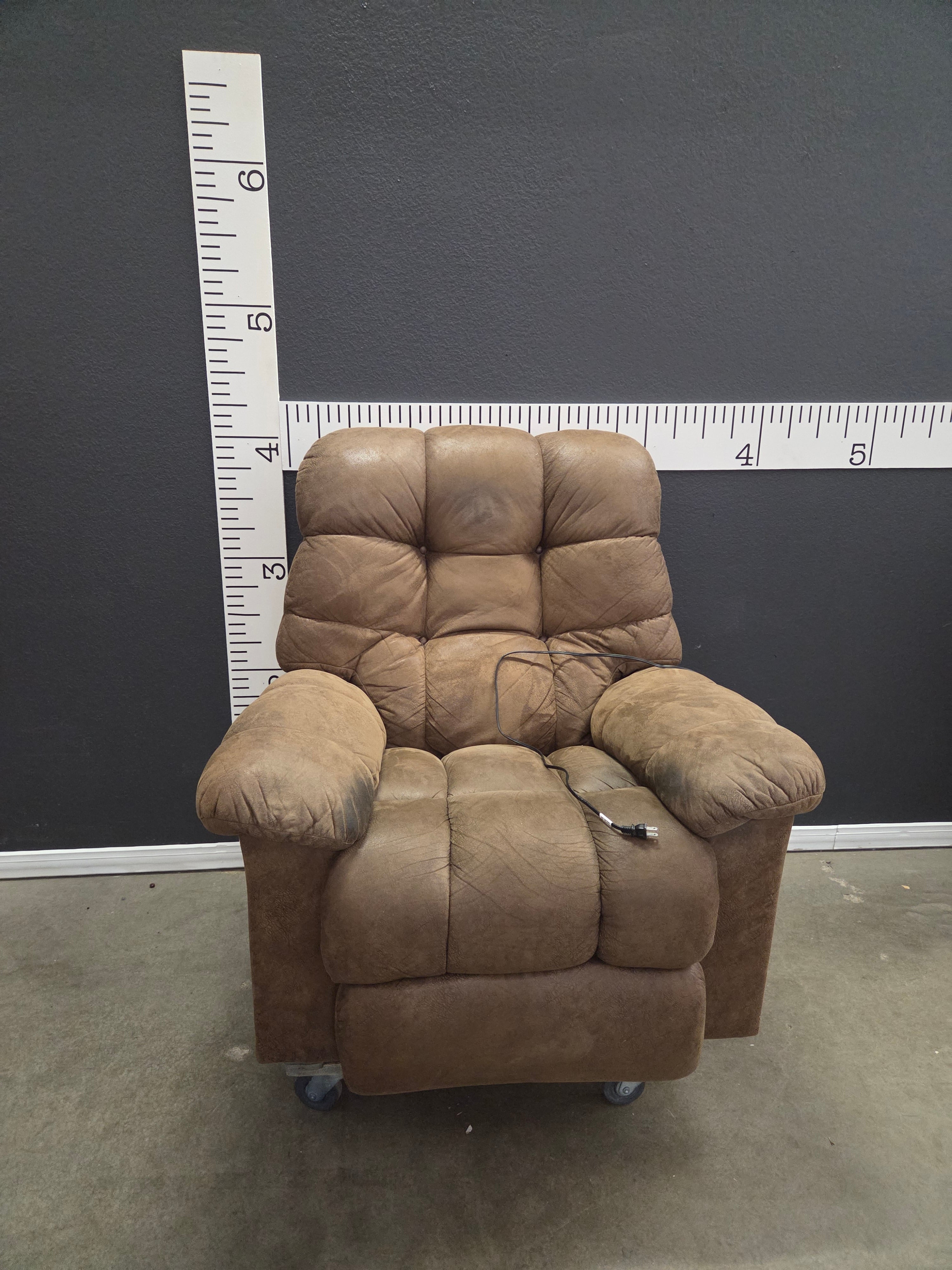 Experience ultimate comfort with this plush, brown recliner chair made with a soft, suede-like fabric finish. The chair features a cozy, inviting design perfect for relaxation in any living room. Approximate Size: 4 x 3 x 3.5