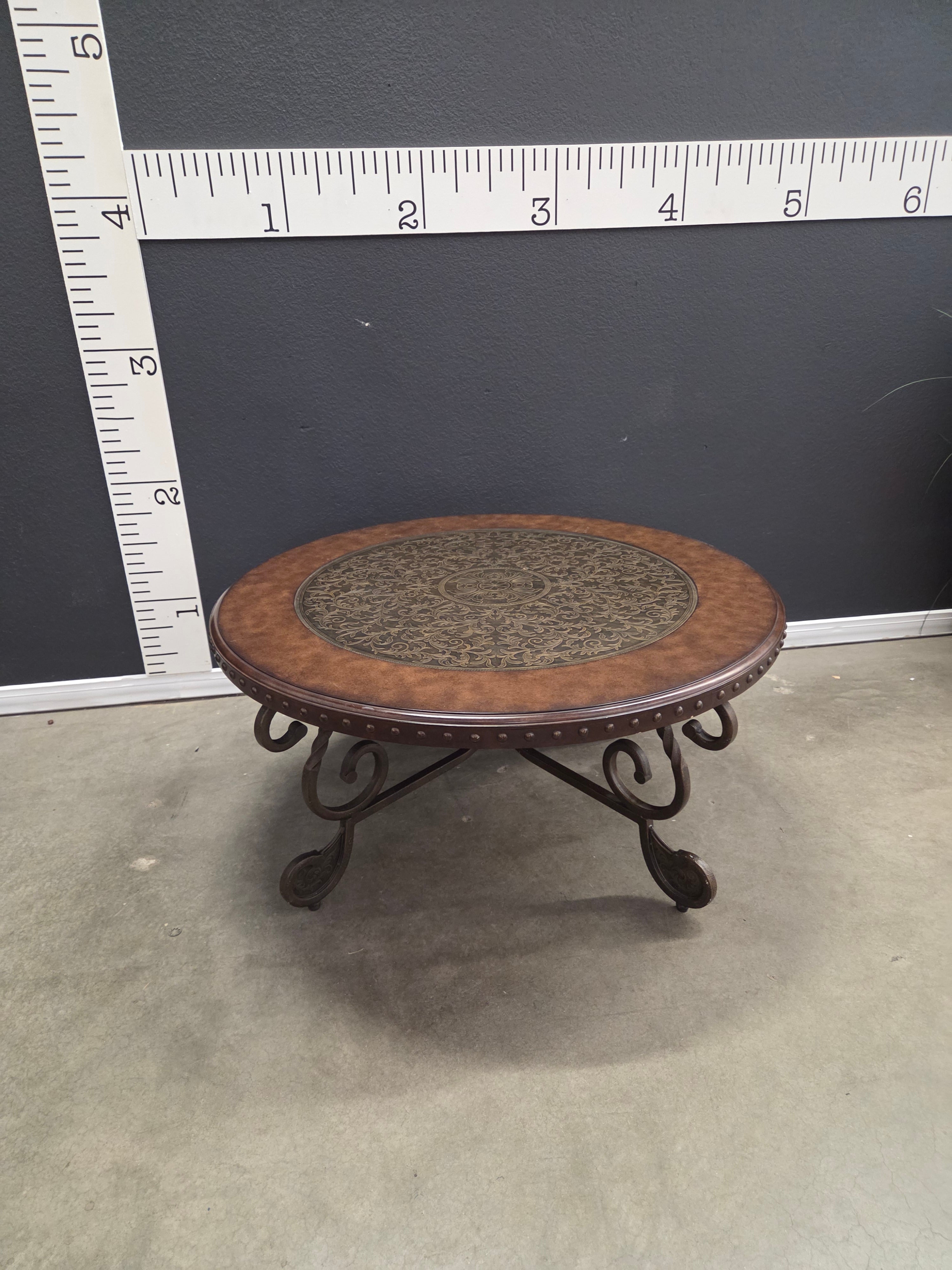 26216 Round Ornate Coffee Table with Metal Legs