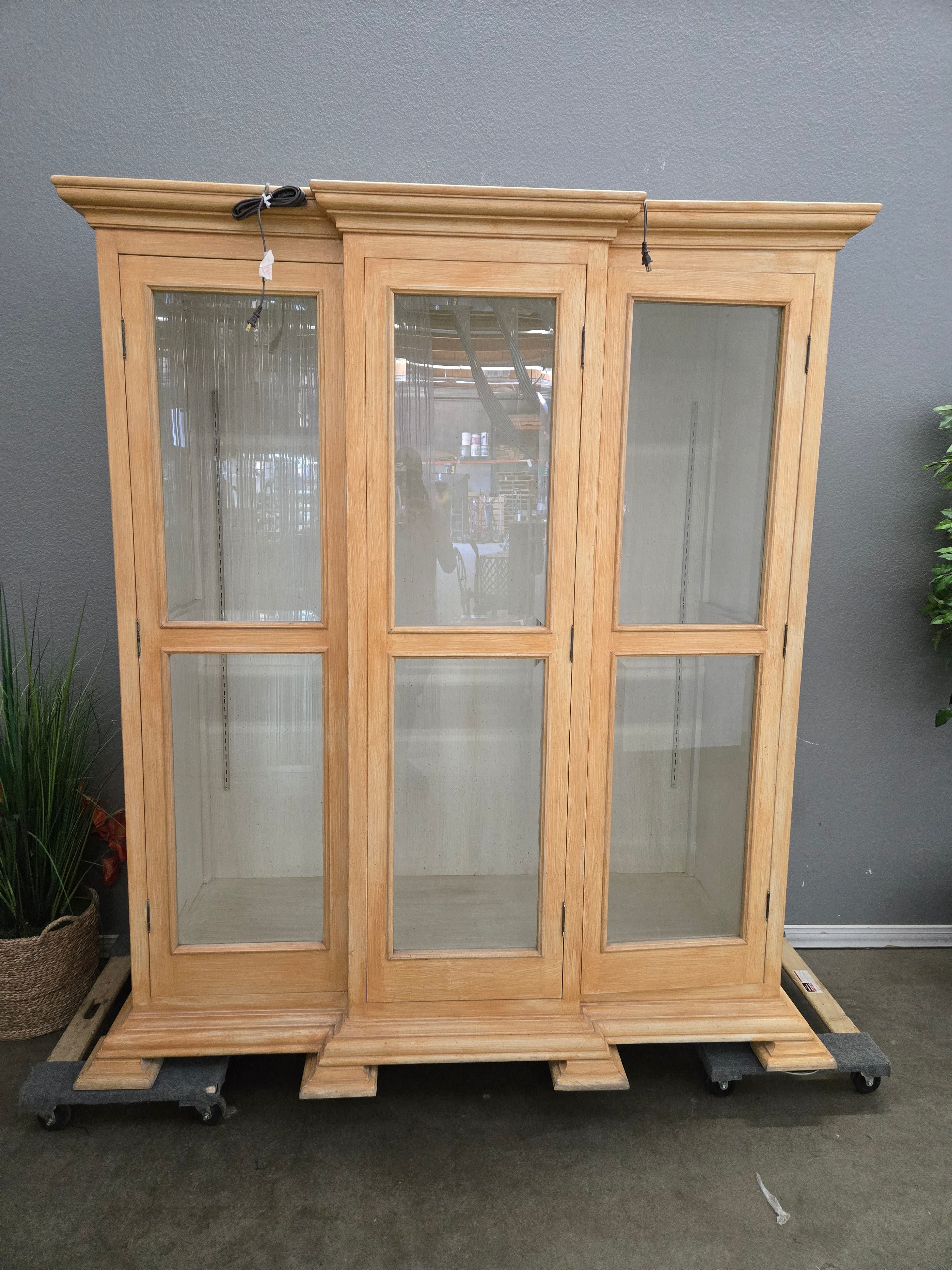 This elegant display cabinet features a light wood finish with glass-paneled doors, ideal for showcasing your collectibles. The rustic appearance adds a charming touch to any room. Approximate Size: 6 x 5 x 2