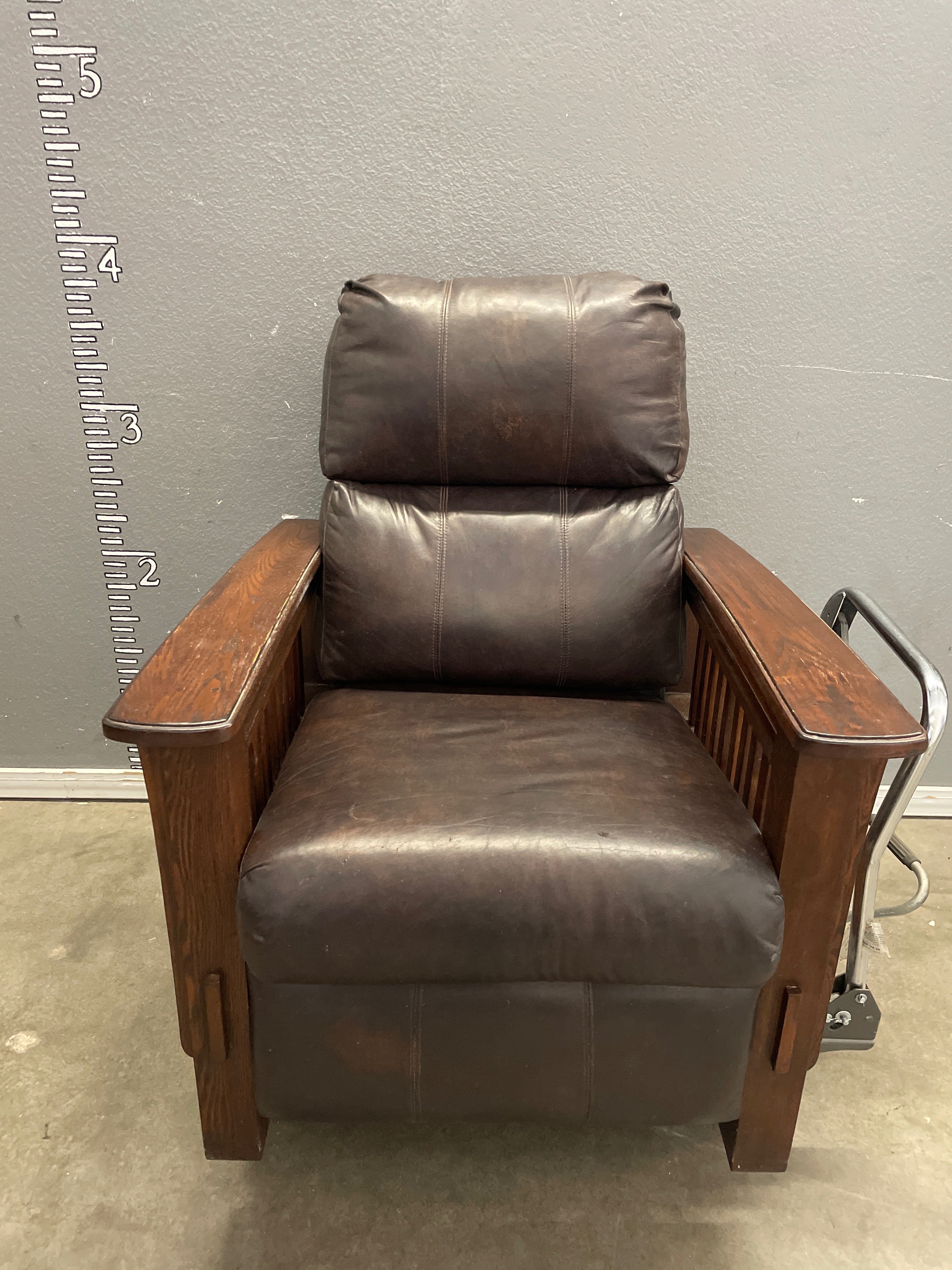 89662 Classic Brown Leather Recliner with Wooden Arms