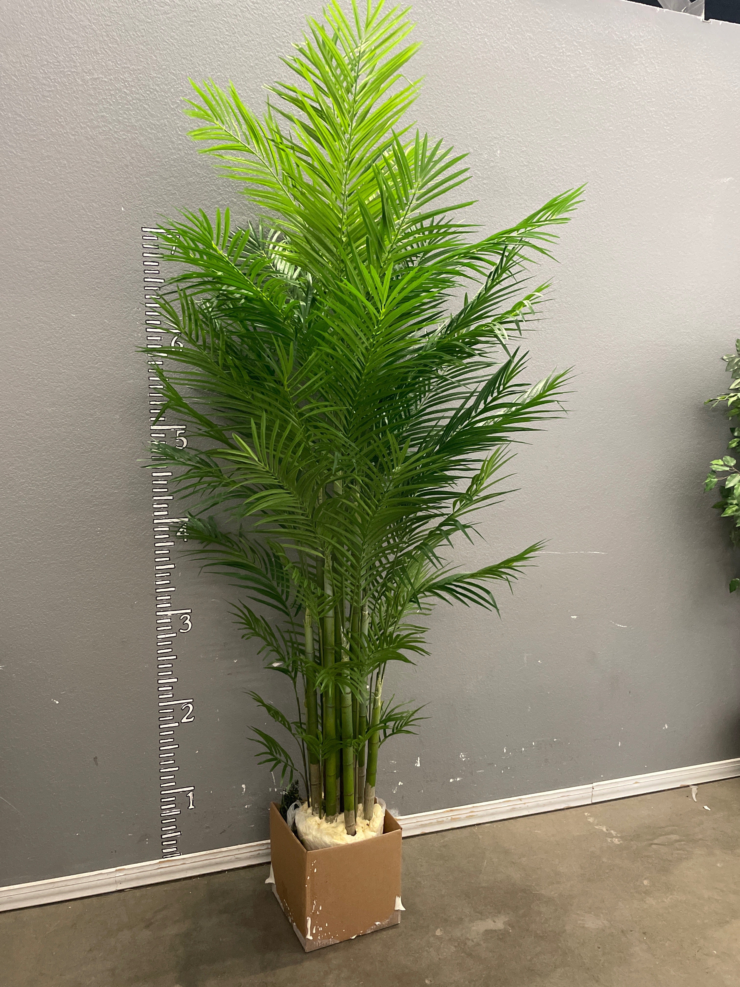 Vibrant green artificial Areca palm tree with a realistic finish. Planted in a sturdy, beige pot for stability. Approximate Size: 6 x 2 x 2