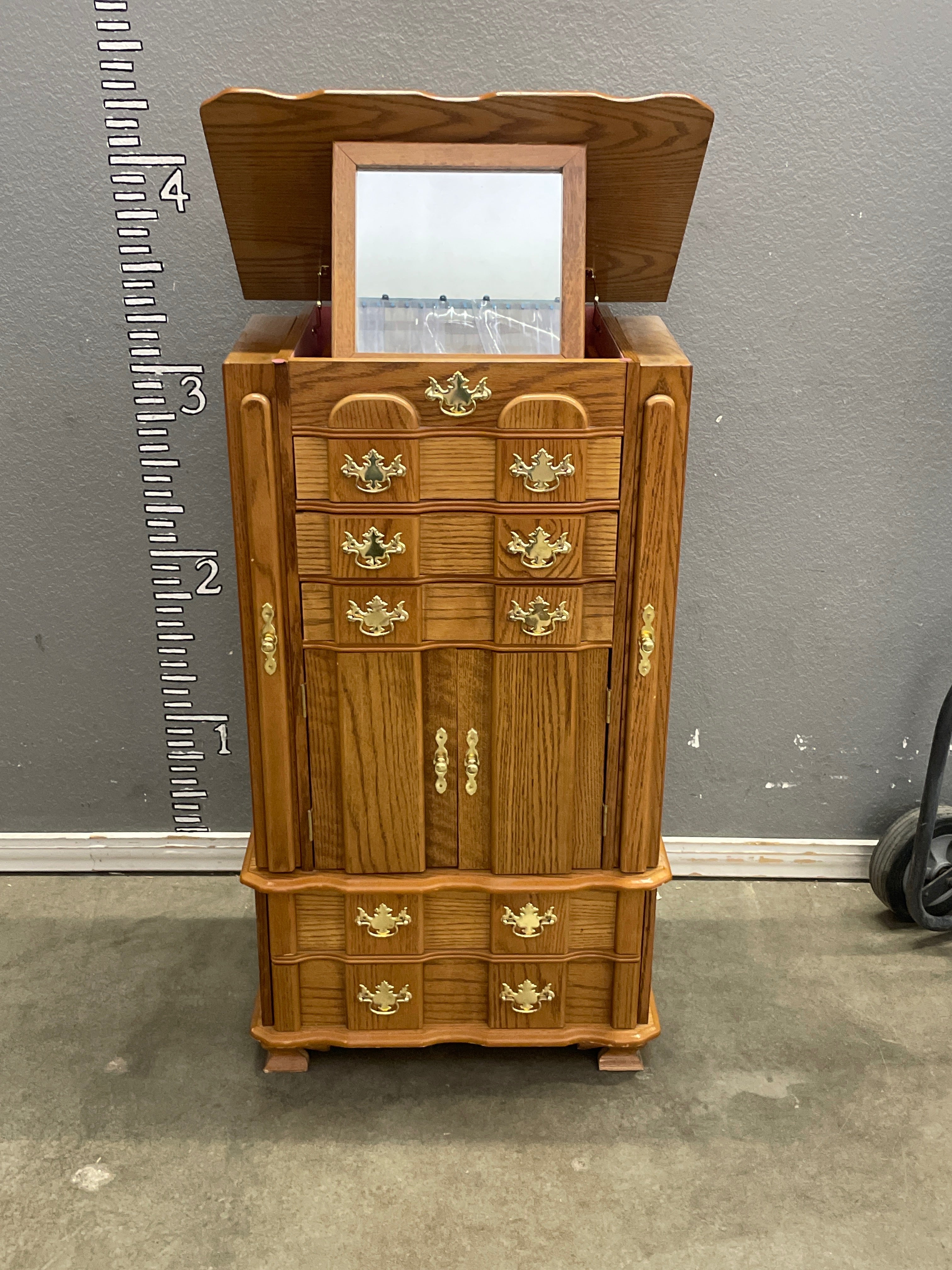 78811 Vintage Oak Jewelry Armoire with Mirror