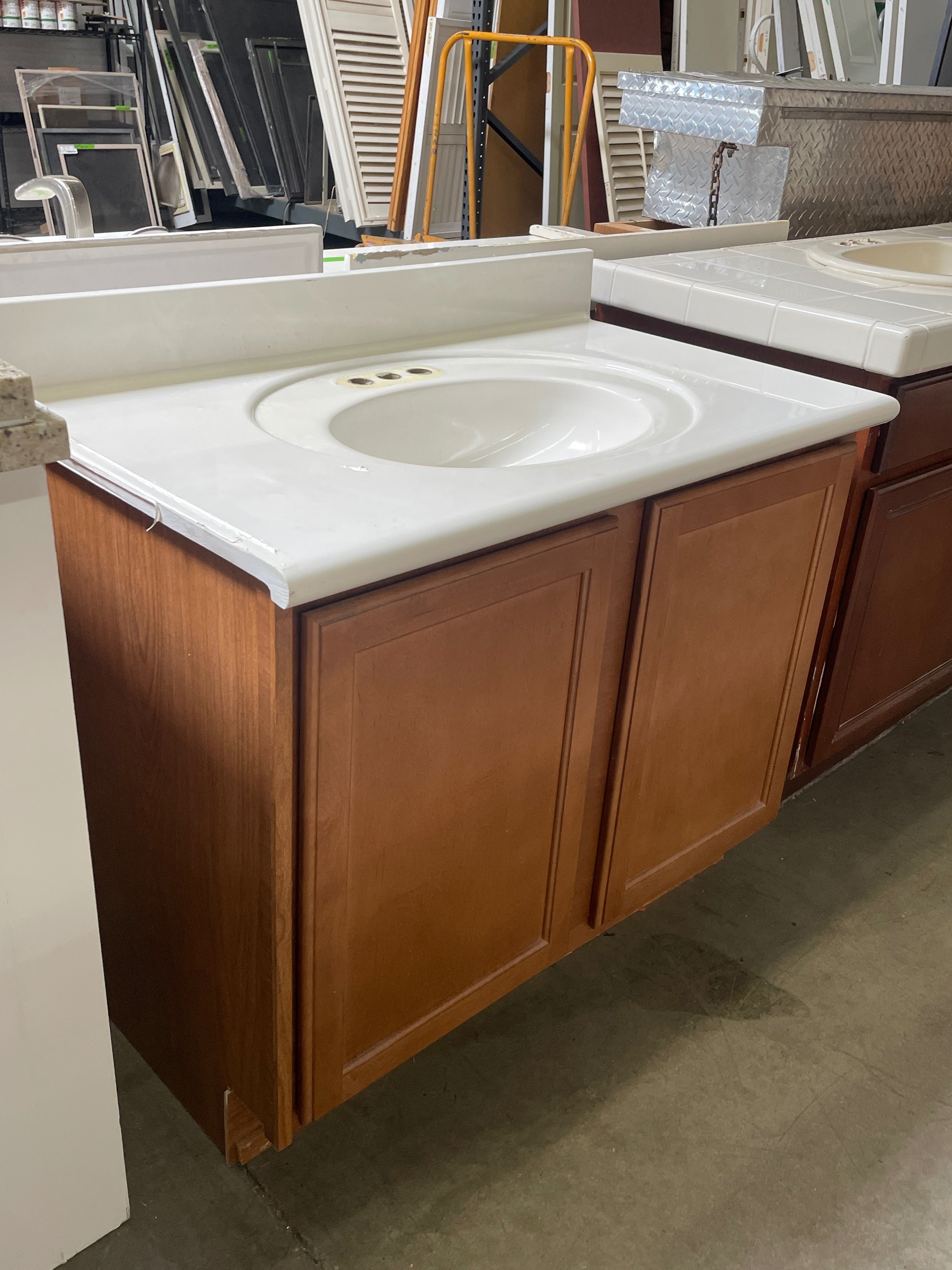 92832 Wood Finish Bathroom Vanity with White Sink