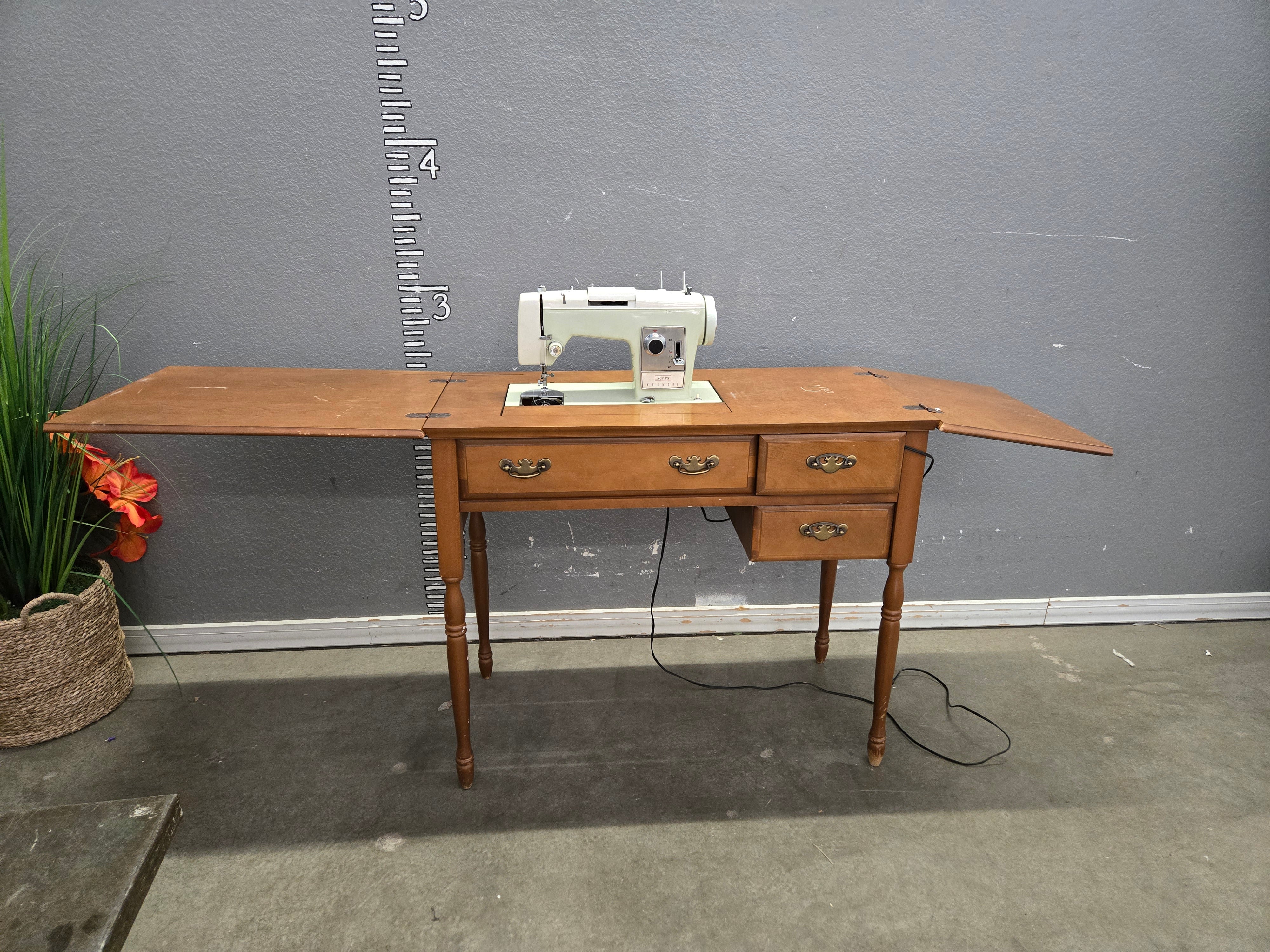 71281 Vintage Wooden Sewing Table with Built-in Sewing Machine