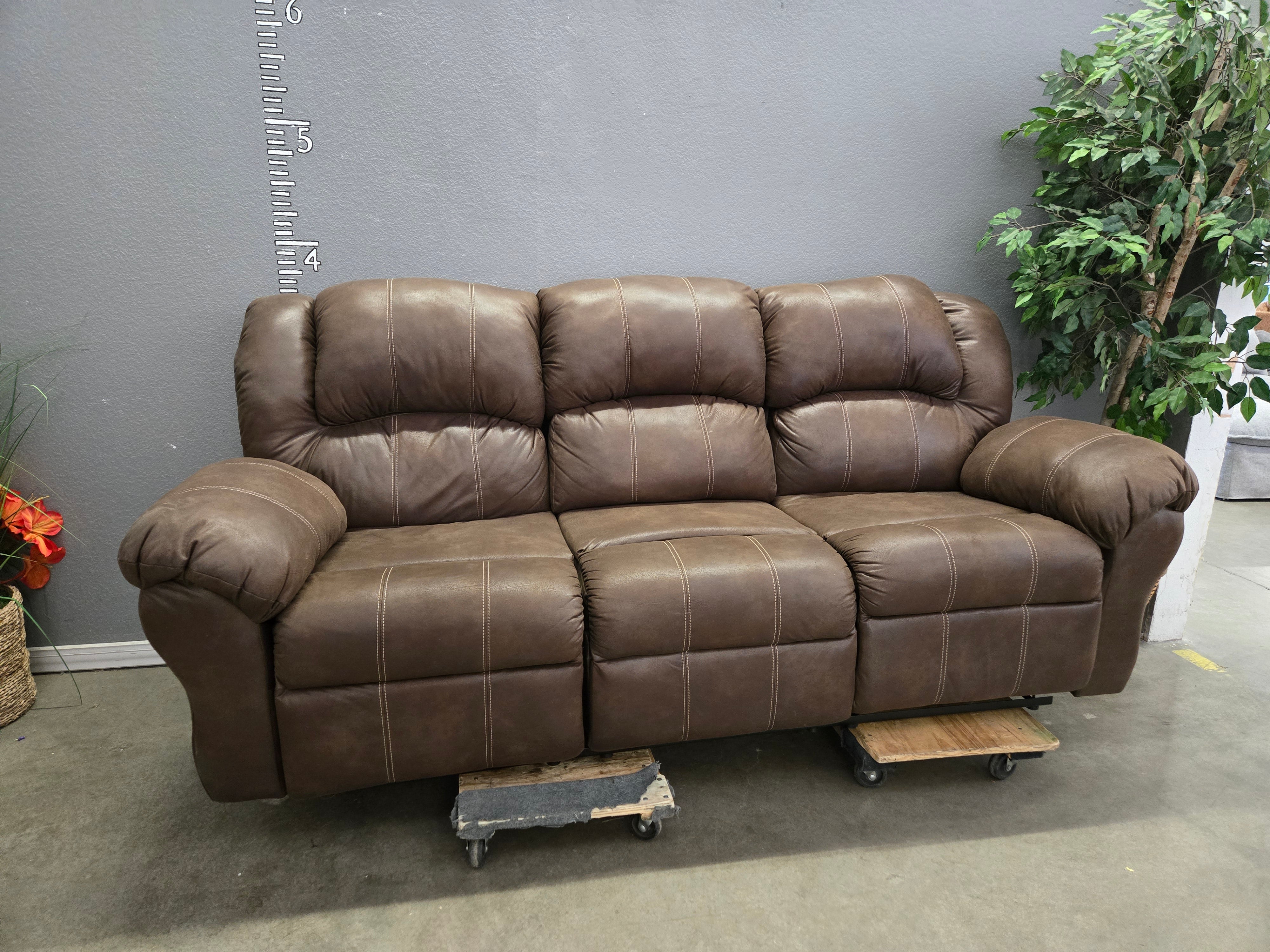 This luxurious sofa features a rich brown leather finish, adding a touch of sophistication to any living space. The overstuffed cushions and reclining function promise unparalleled comfort. Approximate Size: 3 x 7 x 3