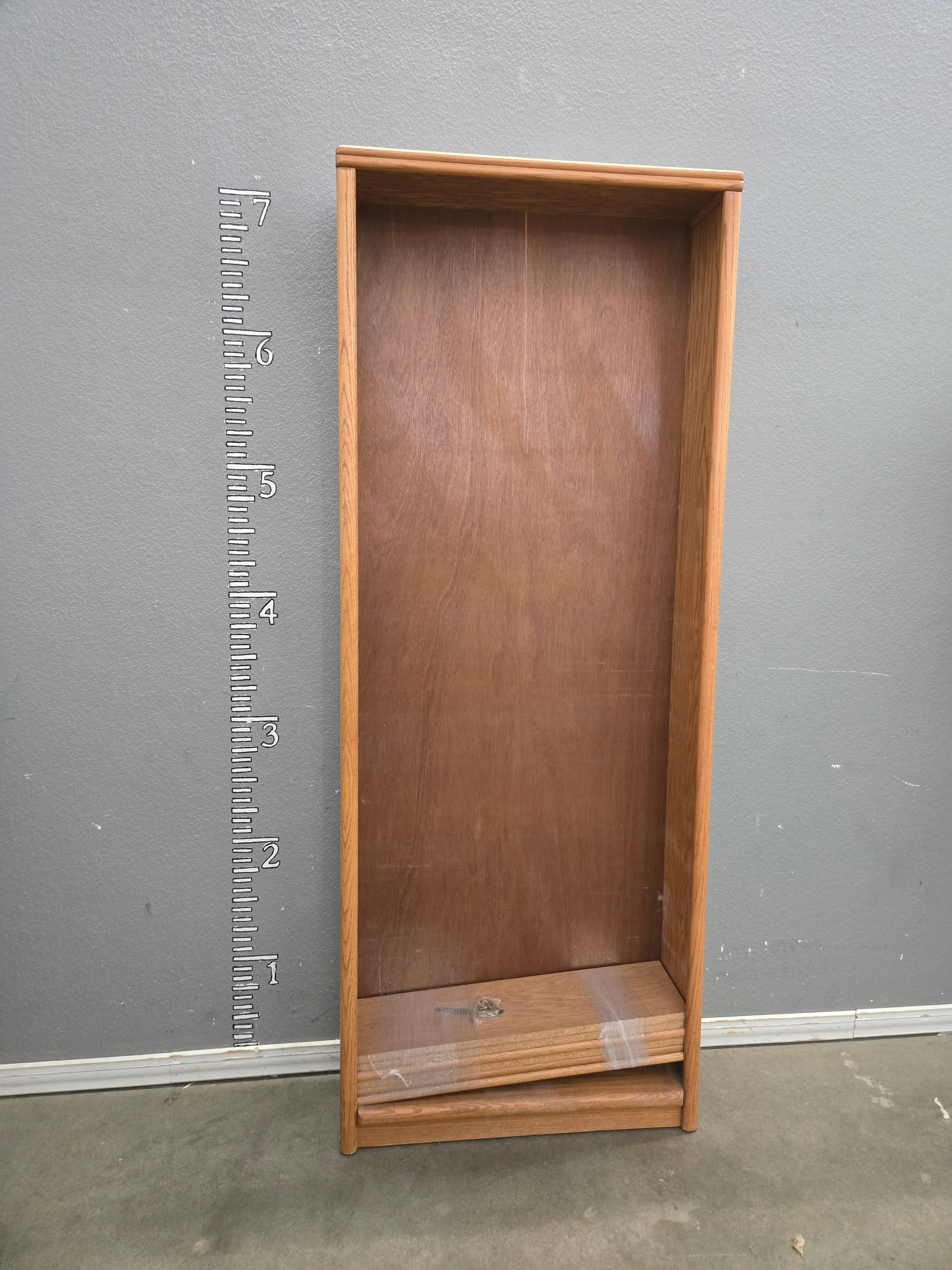 This wooden display bookcase features a rich brown finish, ideal for showcasing books or collectibles. The simple and elegant design complements a variety of home decor styles. Approximate Size: 6 x 2 x 1