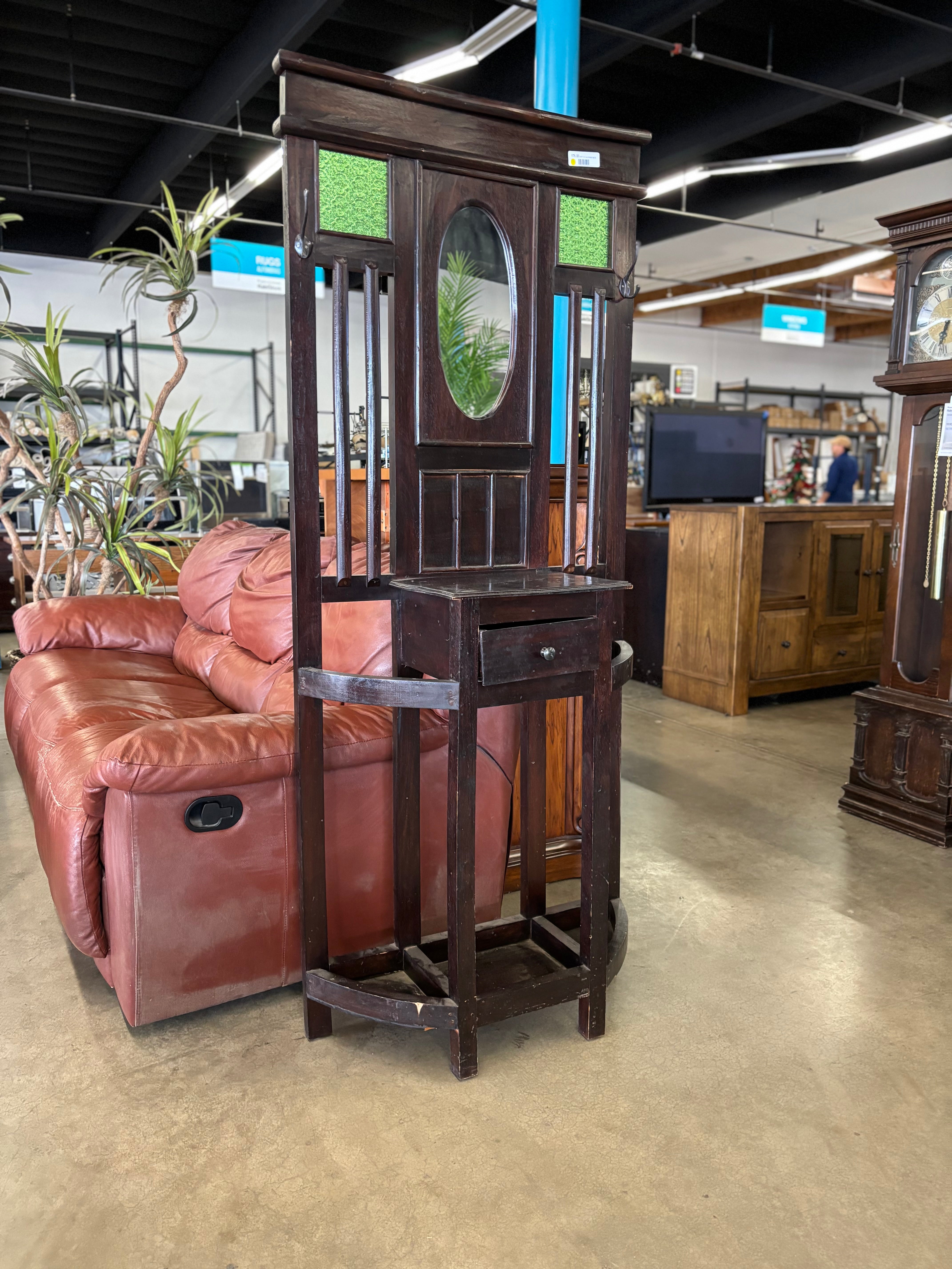 82853 Antique Wooden Hallway Stand with Mirror and Drawer