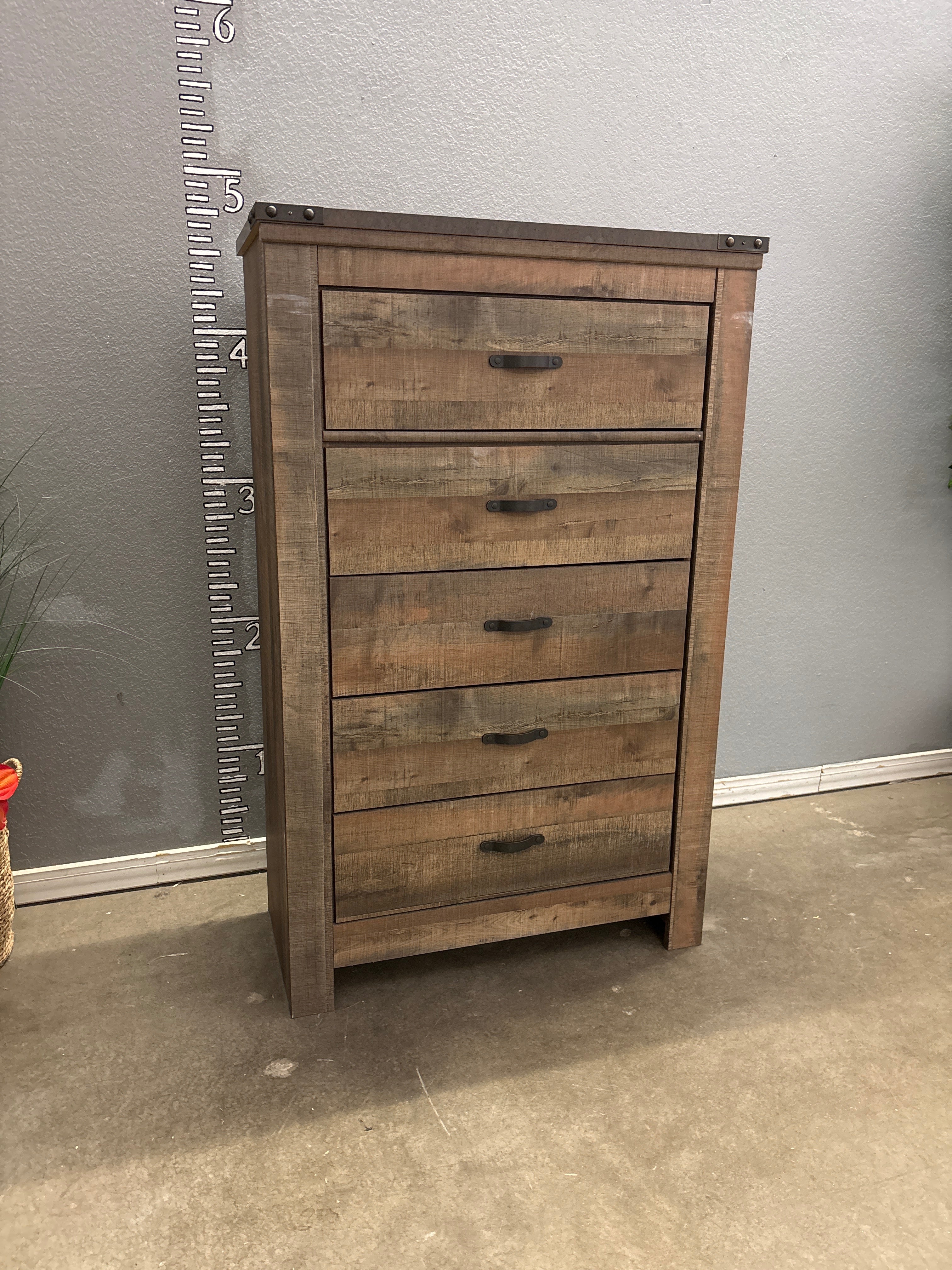 This rustic wood chest features a natural wood finish with sturdy metal handles, perfect for adding a touch of farmhouse charm to your bedroom. The wood grain texture enhances its rustic appeal. Approximate Size: 5 x 2.5 x 1.5