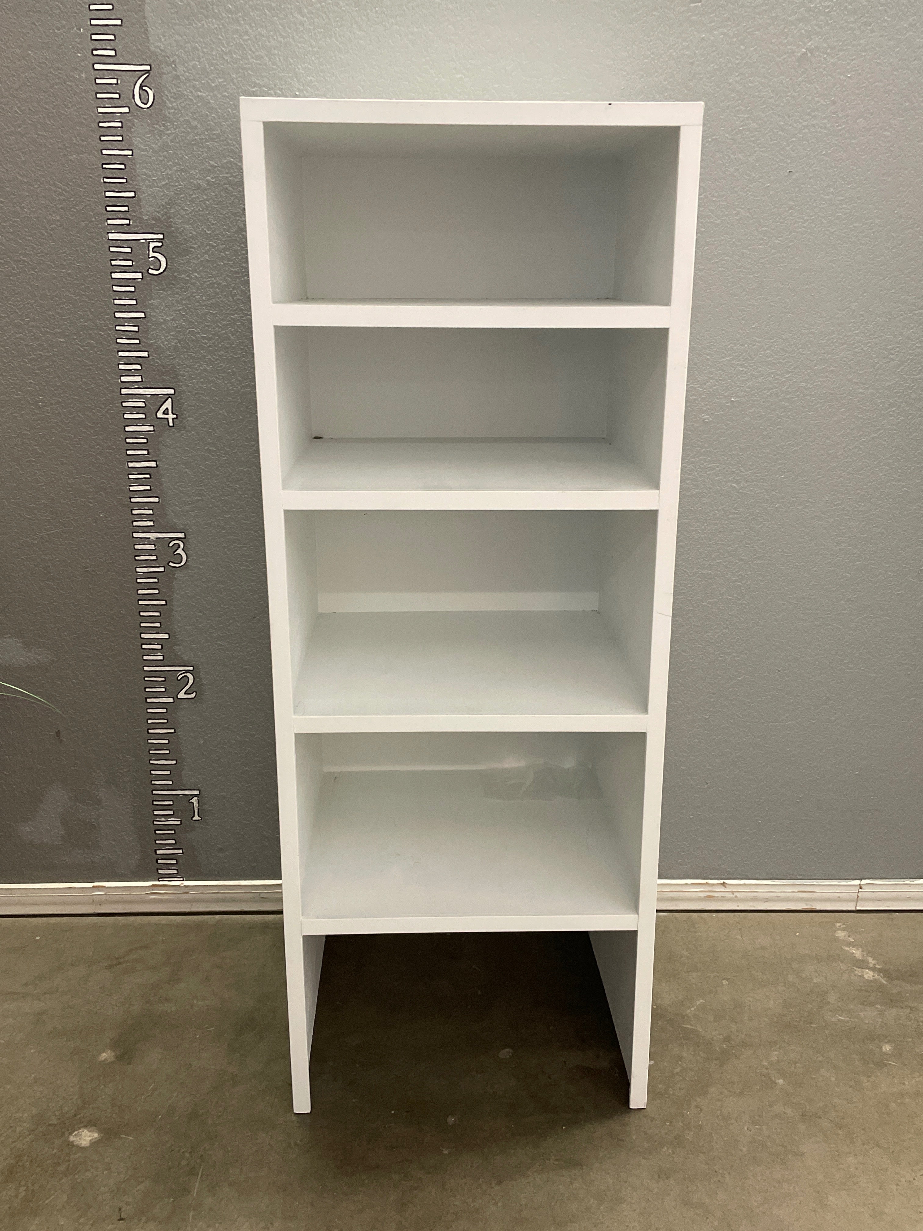 This sleek white bookcase features a smooth, matte finish that complements any decor. Its four spacious shelves provide ample storage for books, decor, or other essentials. Approximate Size: 5 x 1.5 x 1