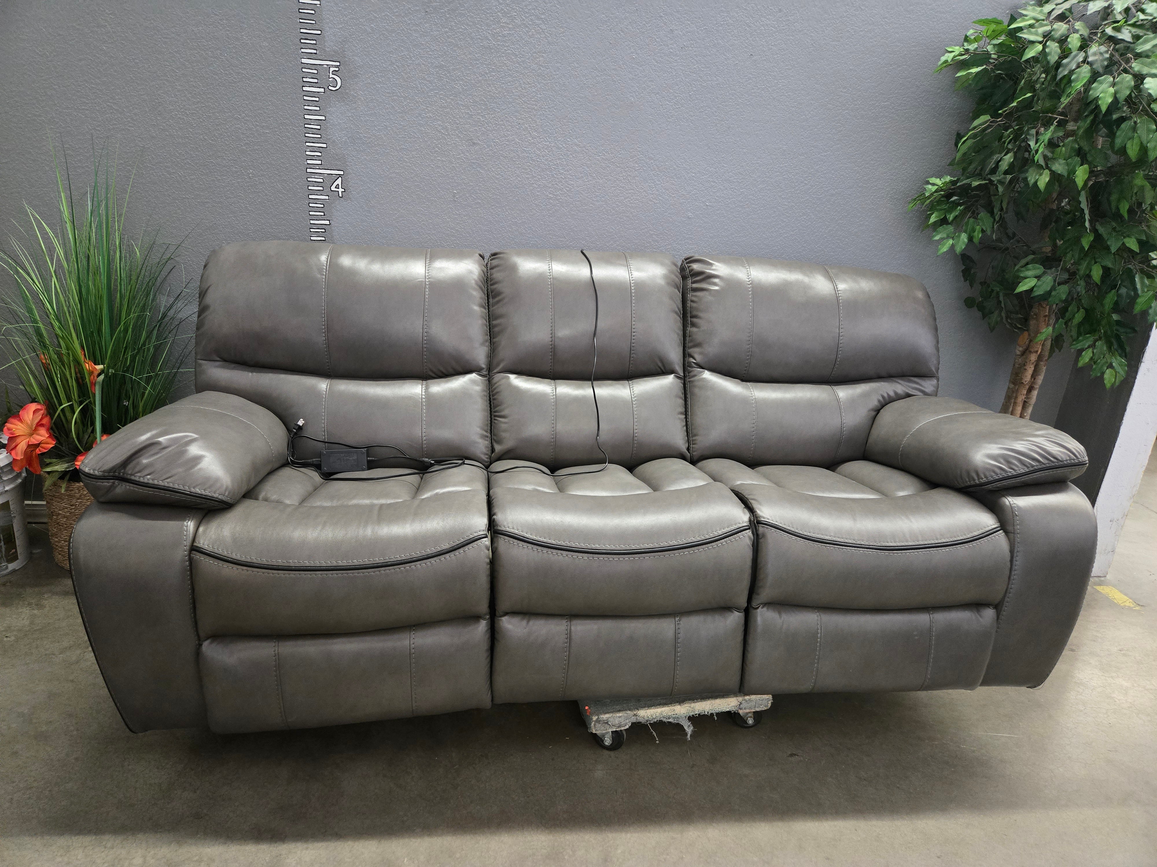 12052 Luxurious Gray Leather Reclining Sofa - 30 Day Guarantee !
