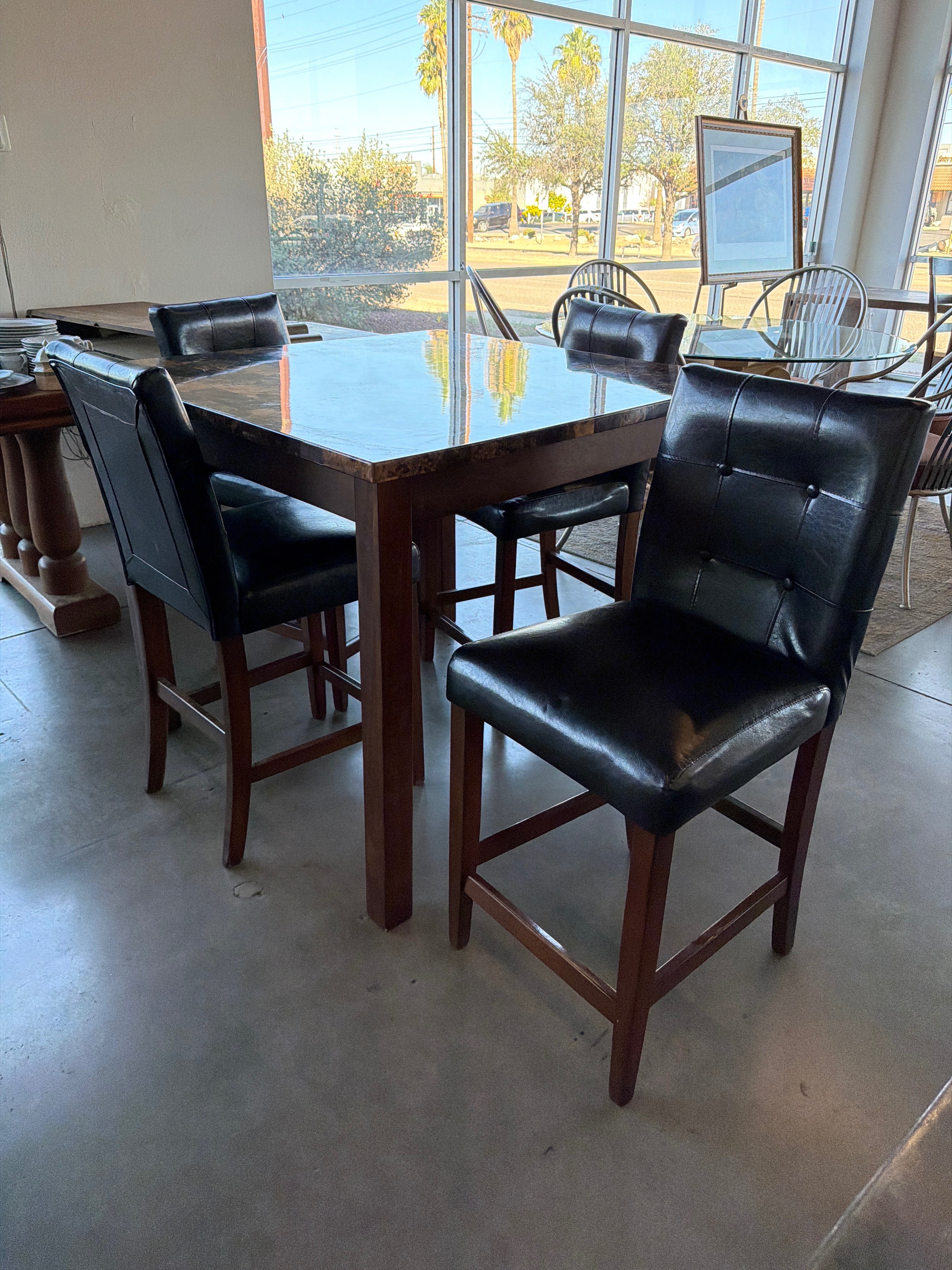 56203 Wooden High Dining Table Set with Black Leather Chairs