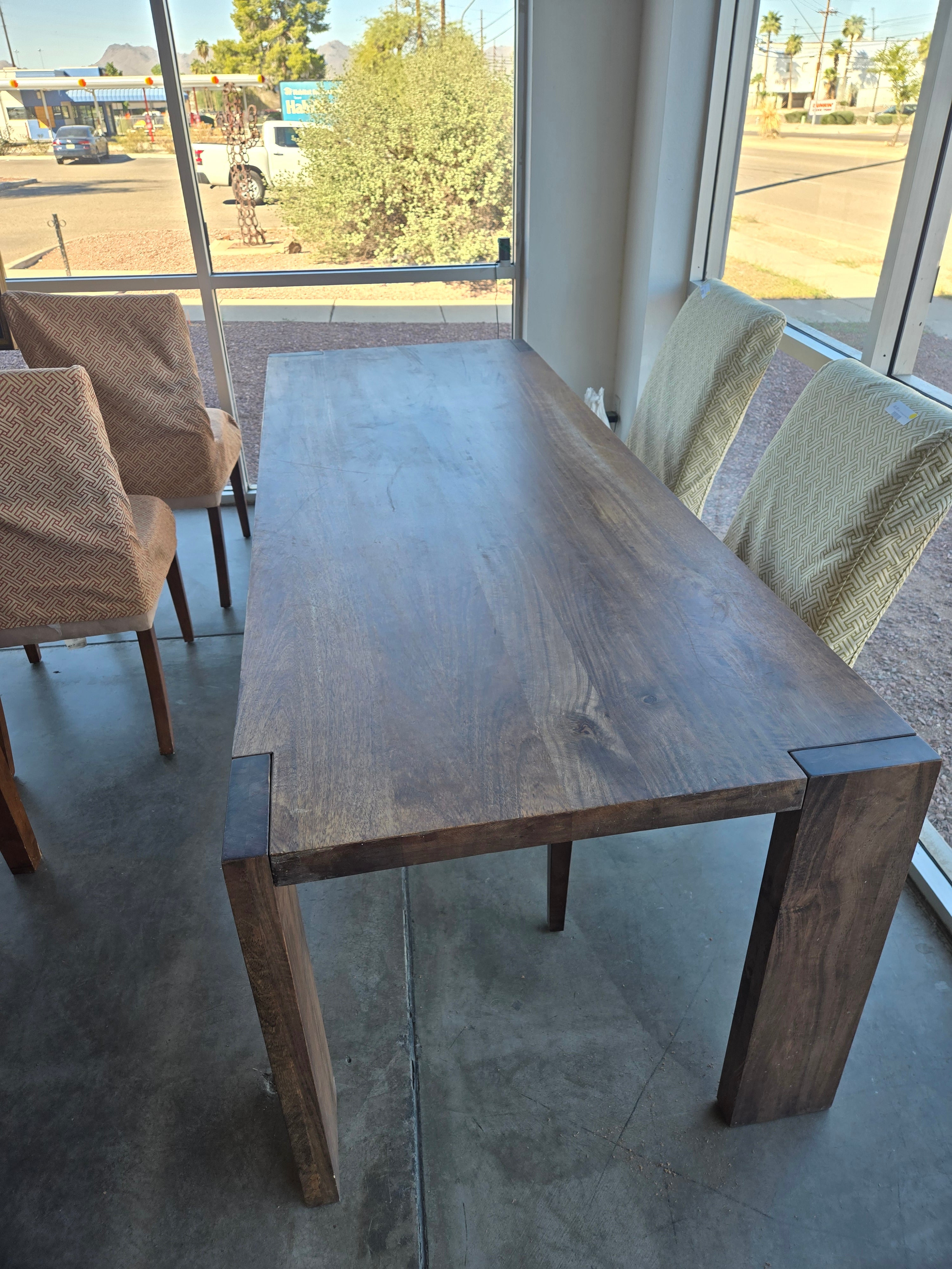 This dining table features a rustic design with a natural wood finish. The sturdy construction is perfect for a timeless dining room setup. Approximate Size: 2.5 x 6 x 3