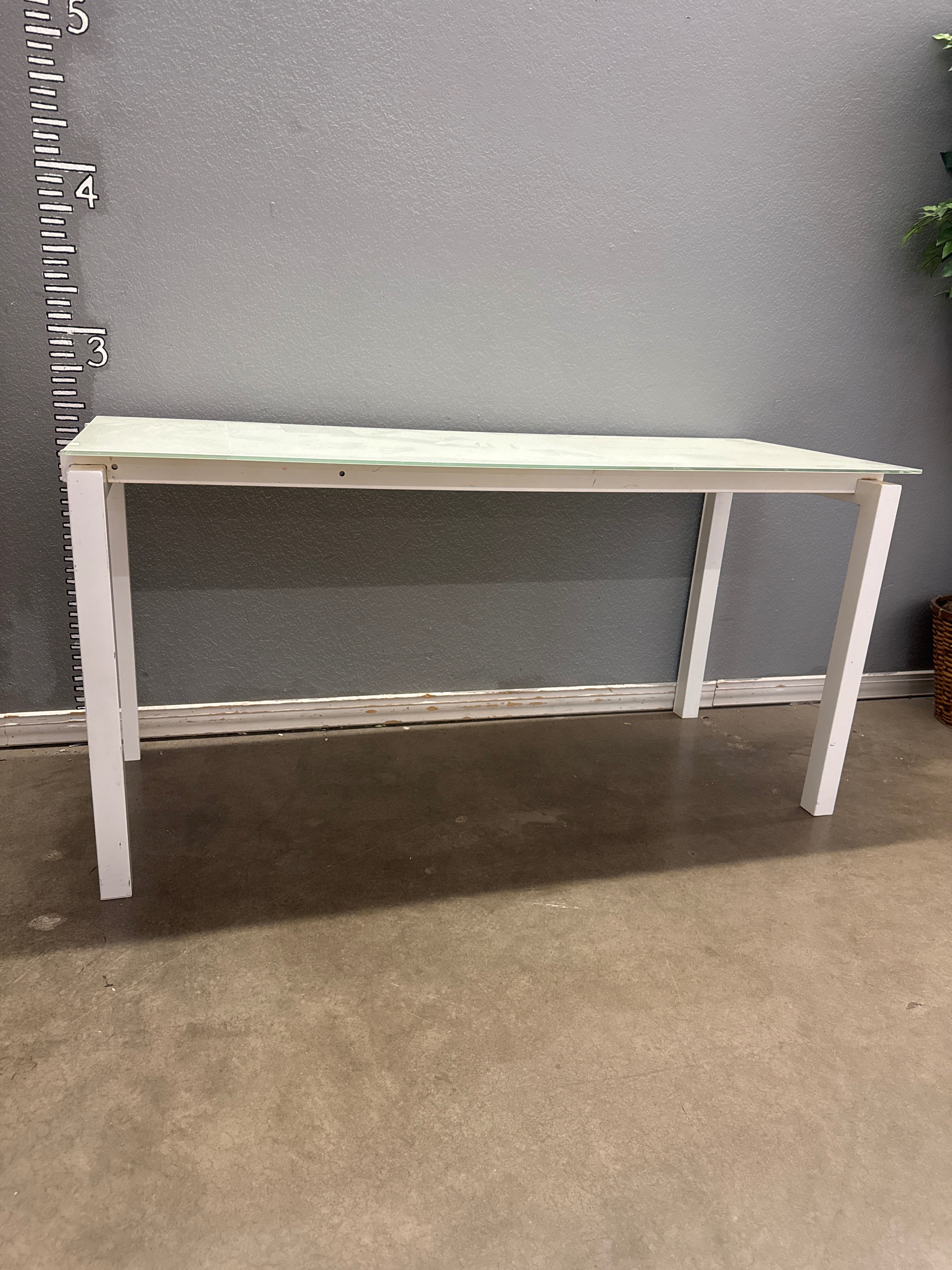 A sleek, minimalist desk table featuring a white finish and clean lines. Perfect for any modern office or study space. Approximate Size: 2.5 x 5 x 2