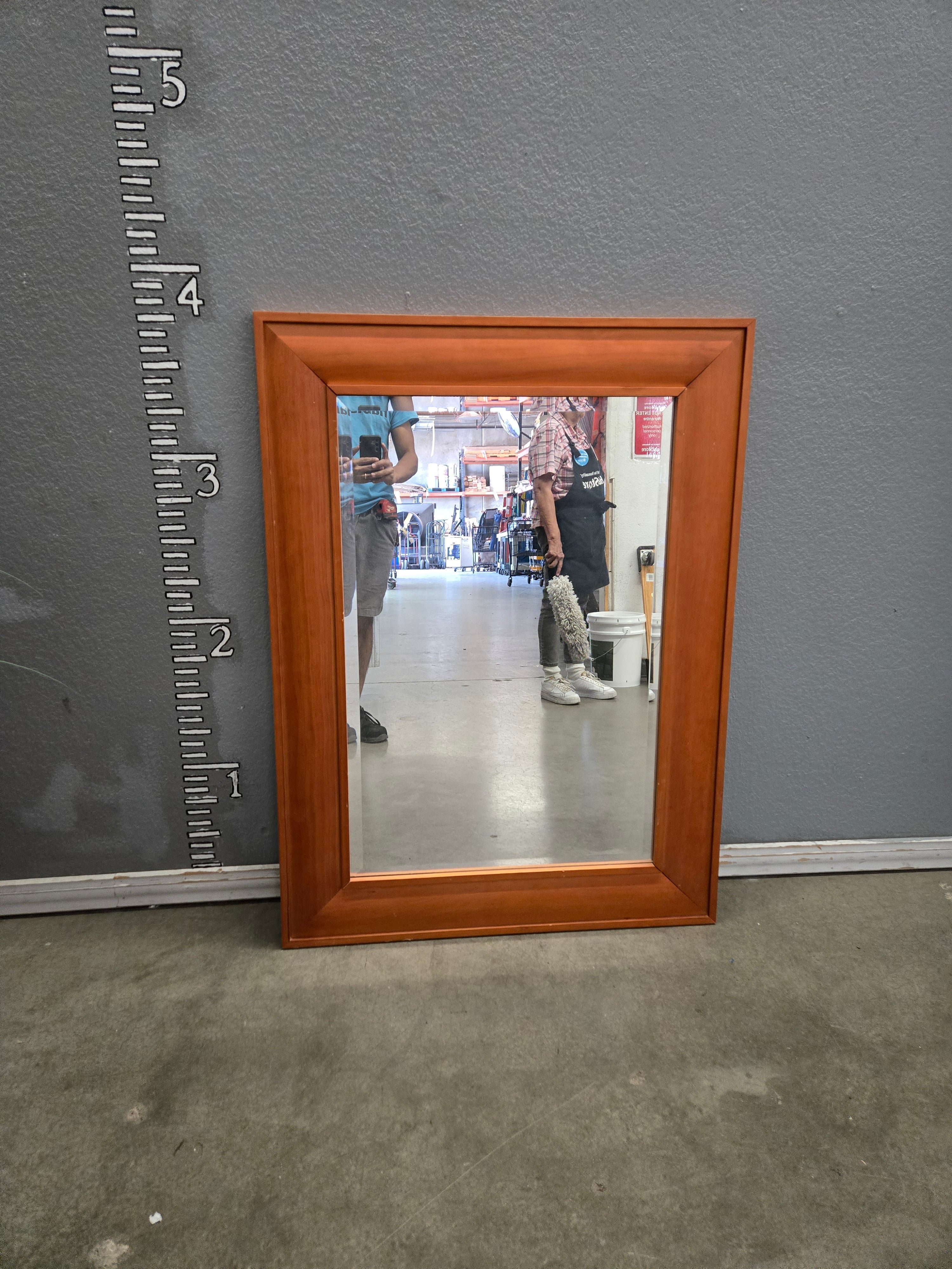 This elegant wall mirror features a rich cherry-colored wooden frame with a smooth finish. Perfect for enhancing the style of any room. Approximate Size: 3 x 2 x 0.1