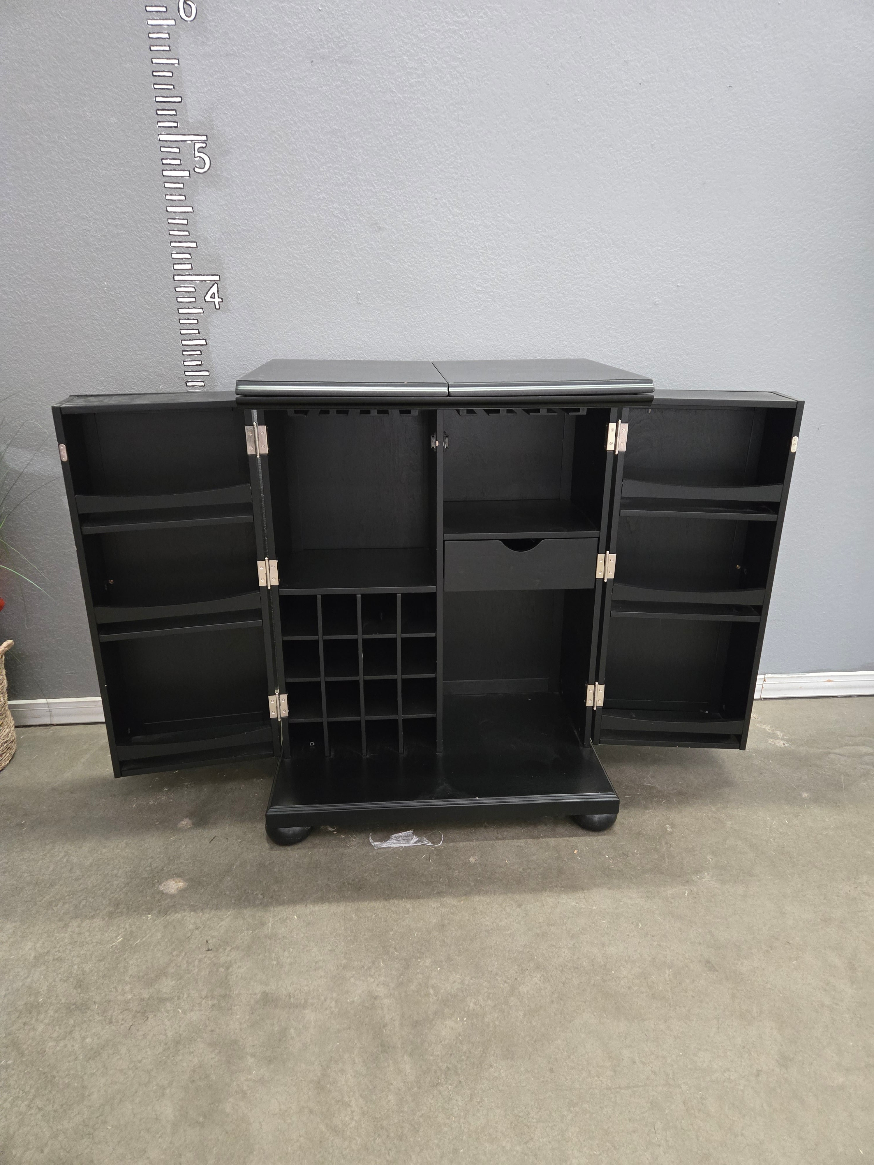 99920 Black Wooden Bar Cabinet with Fold-Out Doors