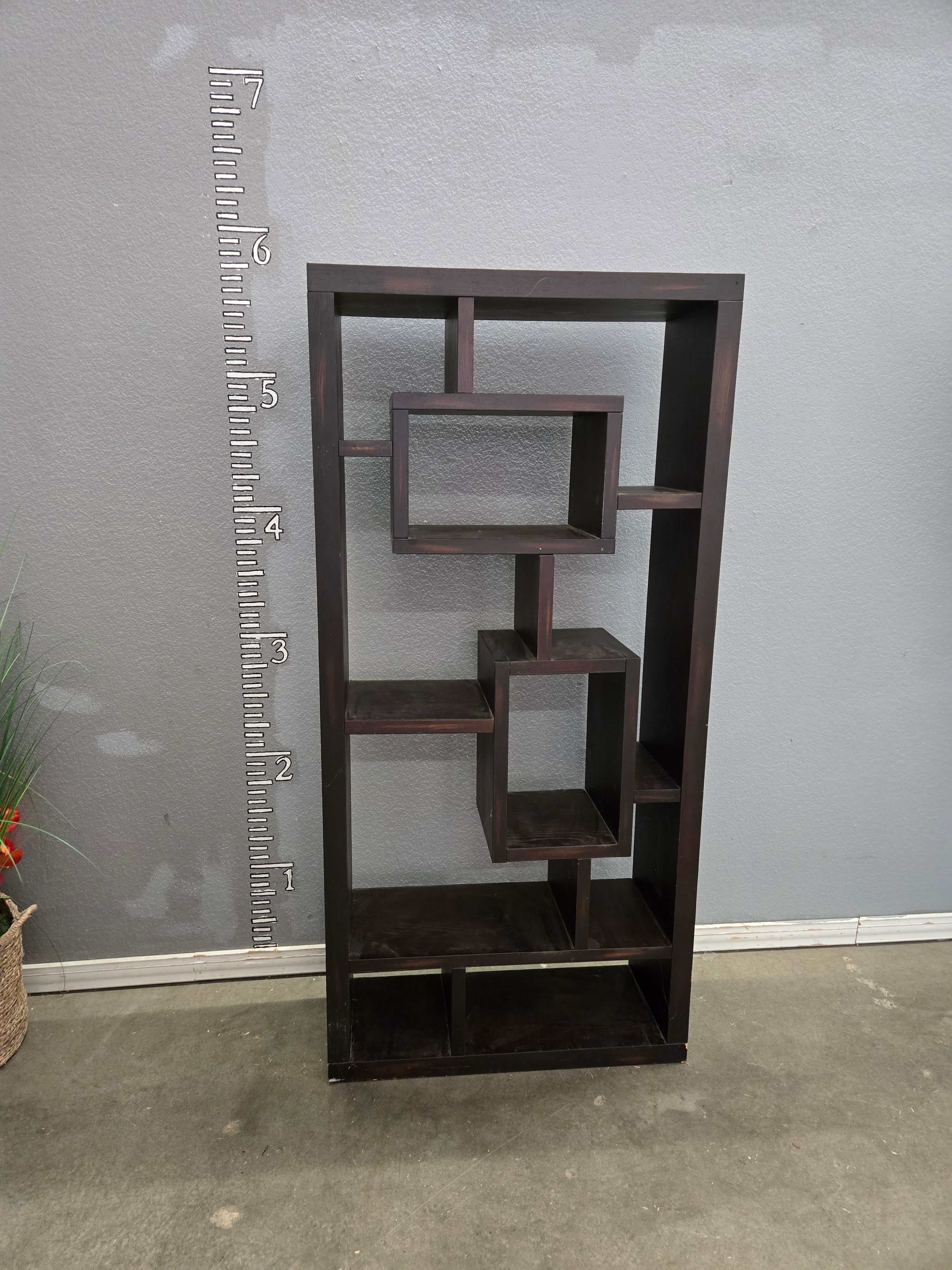 This elegant wooden bookshelf features a dark brown finish with a sleek, modern look. Its geometric design provides ample space for books and décor items in a stylish manner. Approximate Size: 6 x 3 x 1