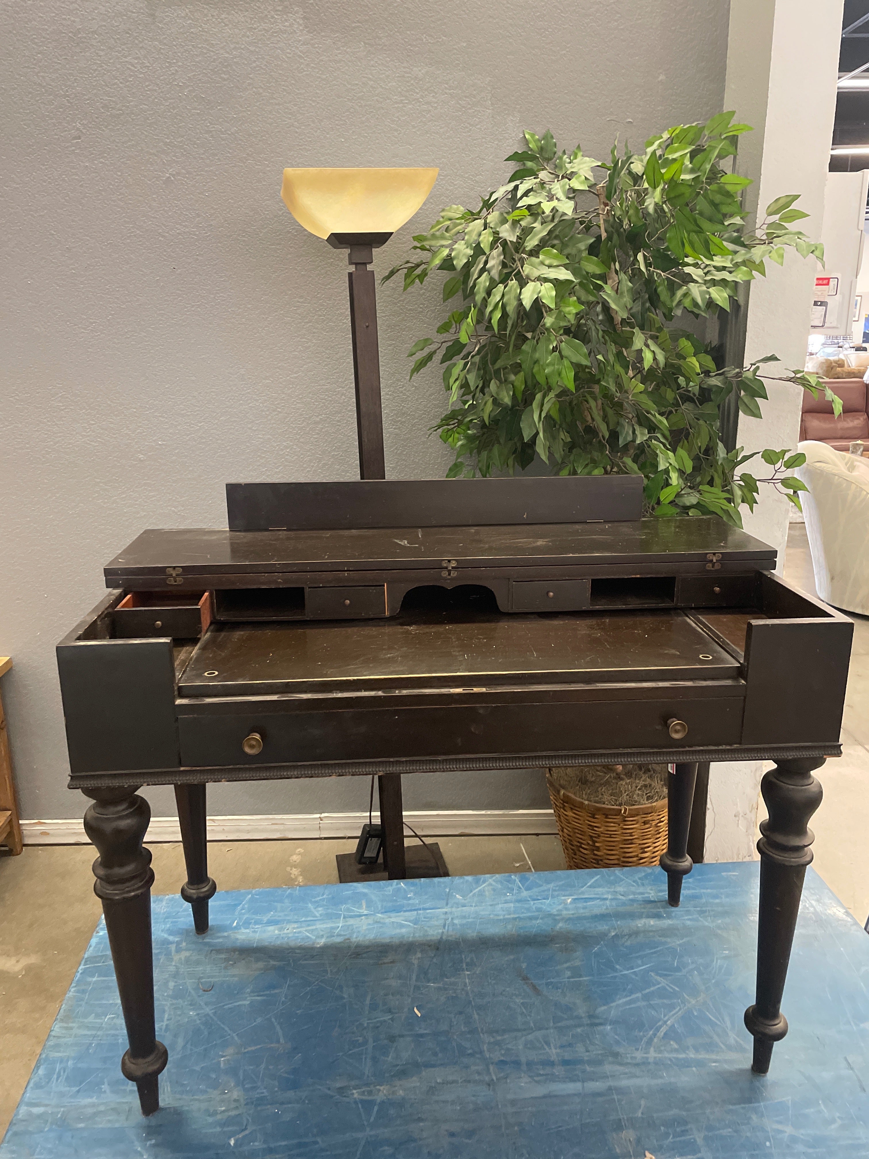 71263 Vintage Dark Wood Writing Desk with Built-in Lamp