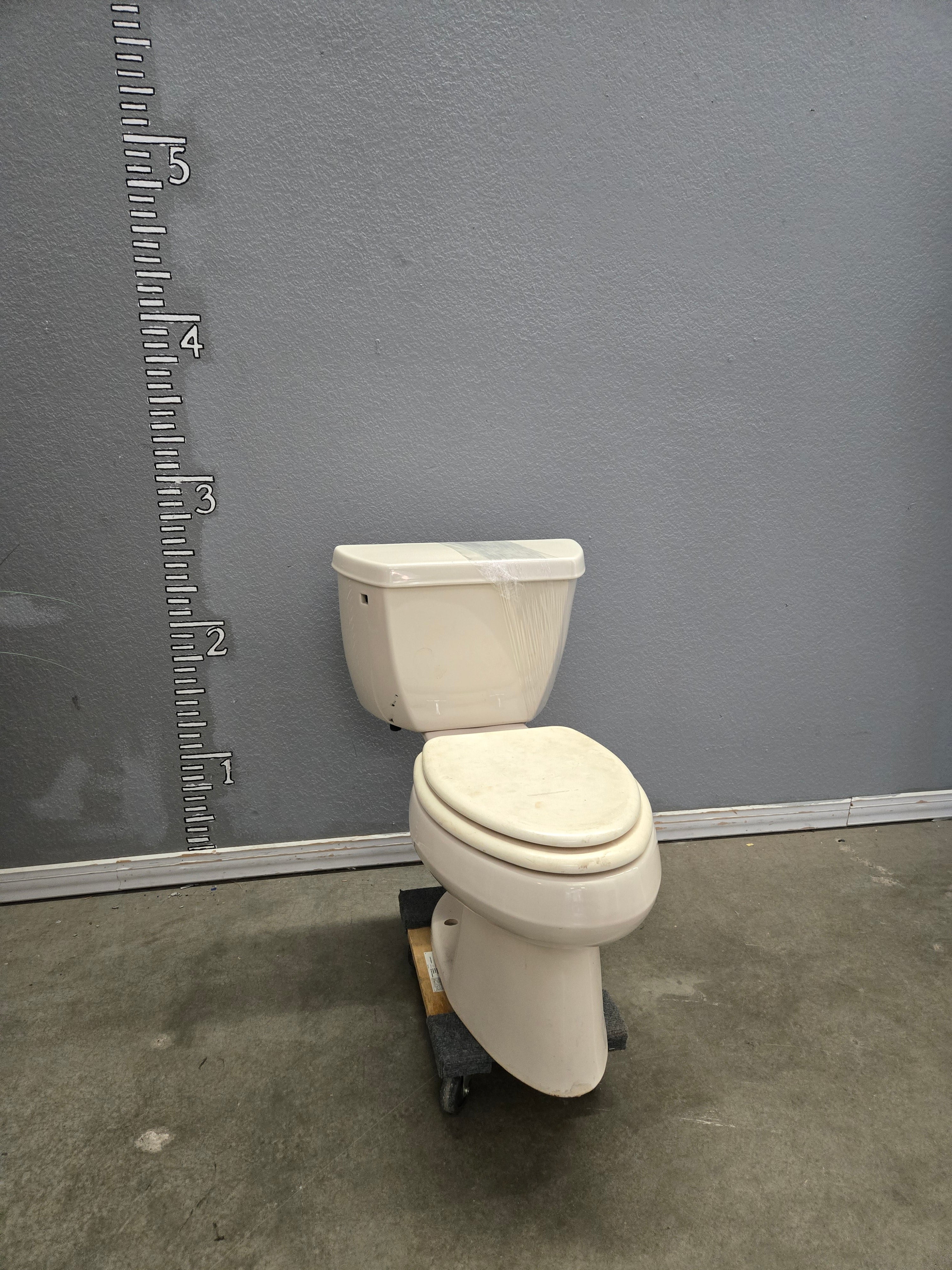 A sturdy and reliable classic white porcelain toilet with a glossy finish, perfect for any bathroom setting. Its sleek design complements both modern and traditional styles. Approximate Size: 2.5 x 1.5 x 2