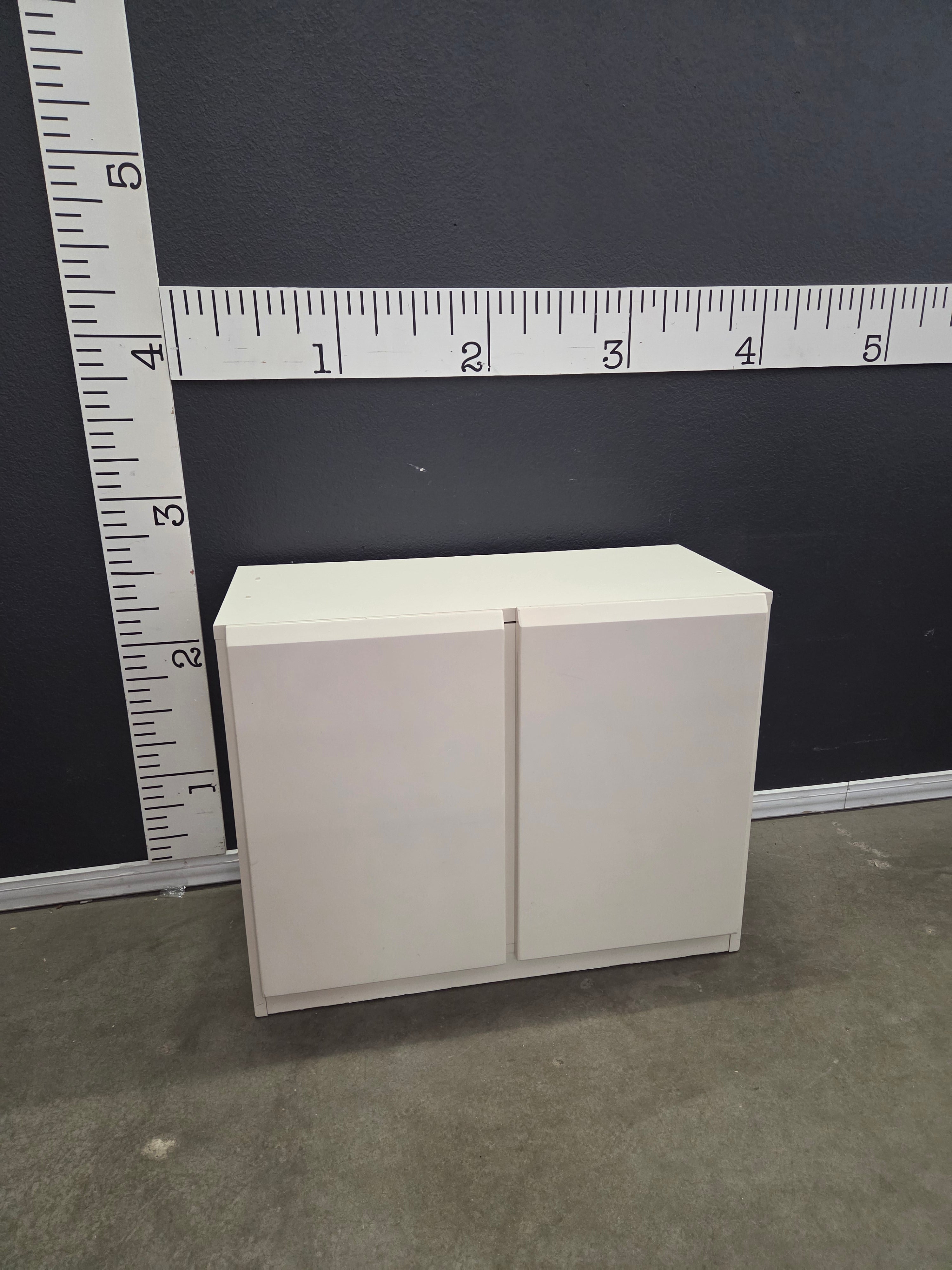 Sleek and minimalist white storage cabinet with a smooth matte finish. Perfect for organizing small spaces. Approximate Size: 2 x 3 x 1