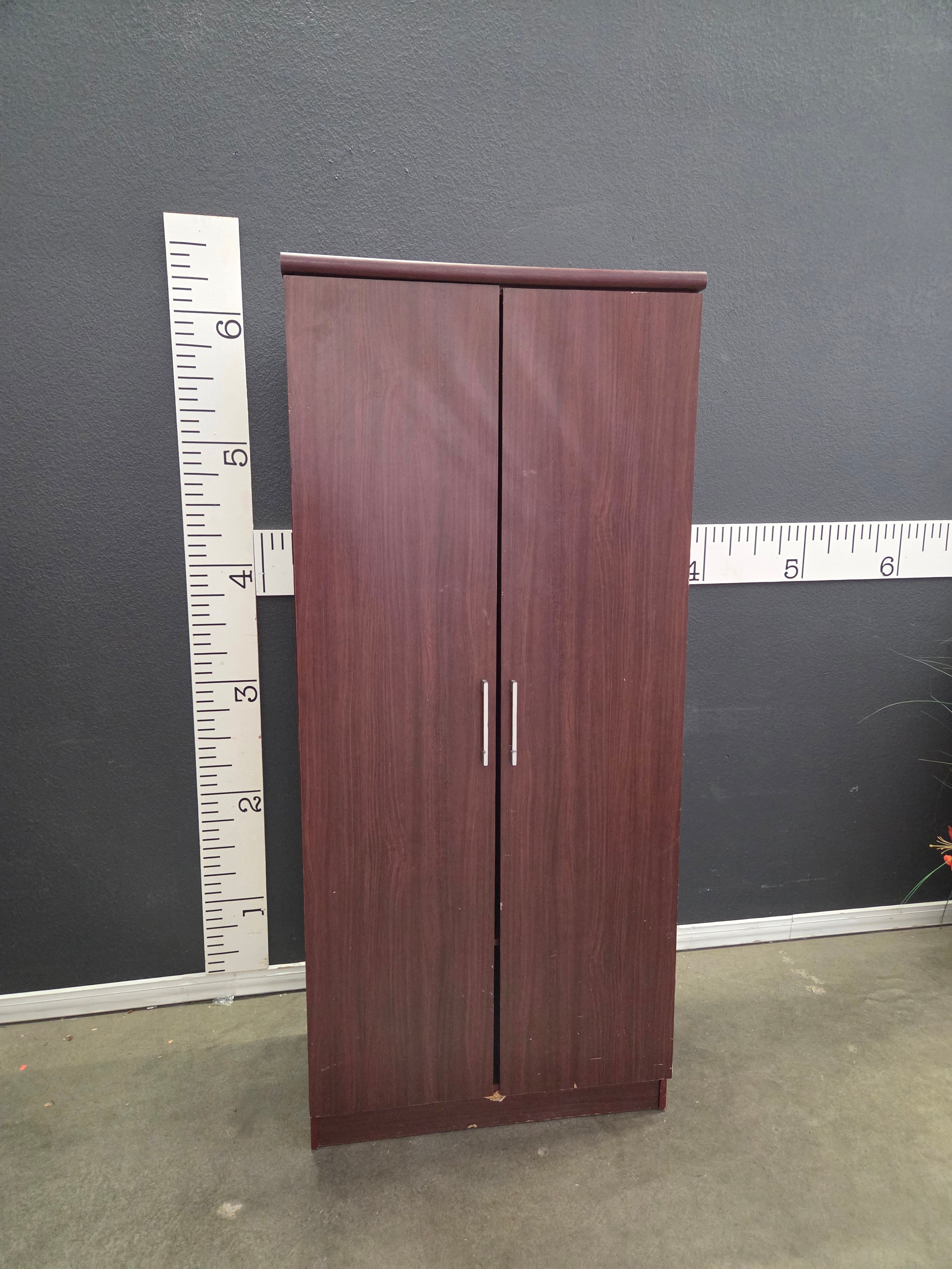 This elegant storage cabinet features a rich mahogany finish, providing a sophisticated touch to any room. The cabinet's simple design is complemented by durable metal handles, offering both style and functionality. Approximate Size: 6 x 2.5 x 1.5