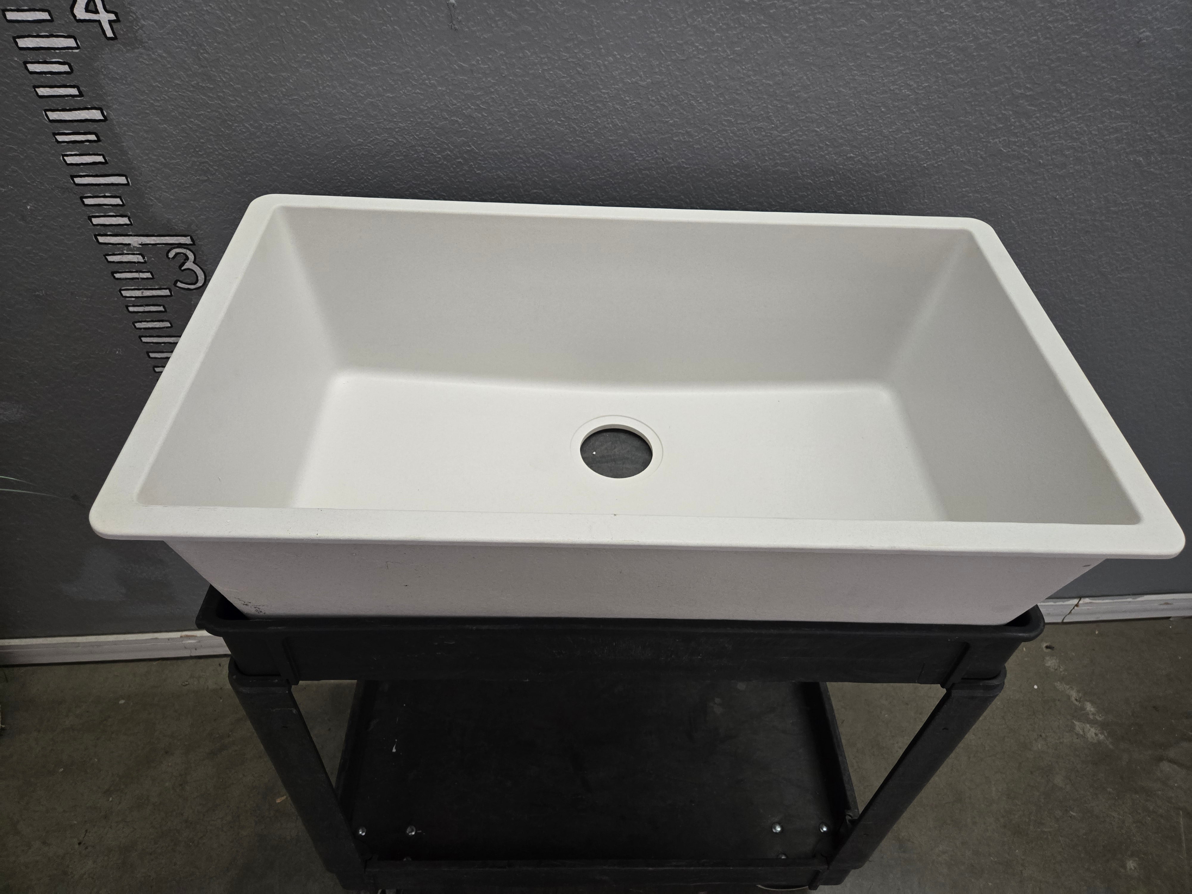 This rectangular sink features a smooth, white matte finish, offering a sleek and modern look. Ideal for any contemporary bathroom or utility area. Approximate Size: 1 x 2 x 1