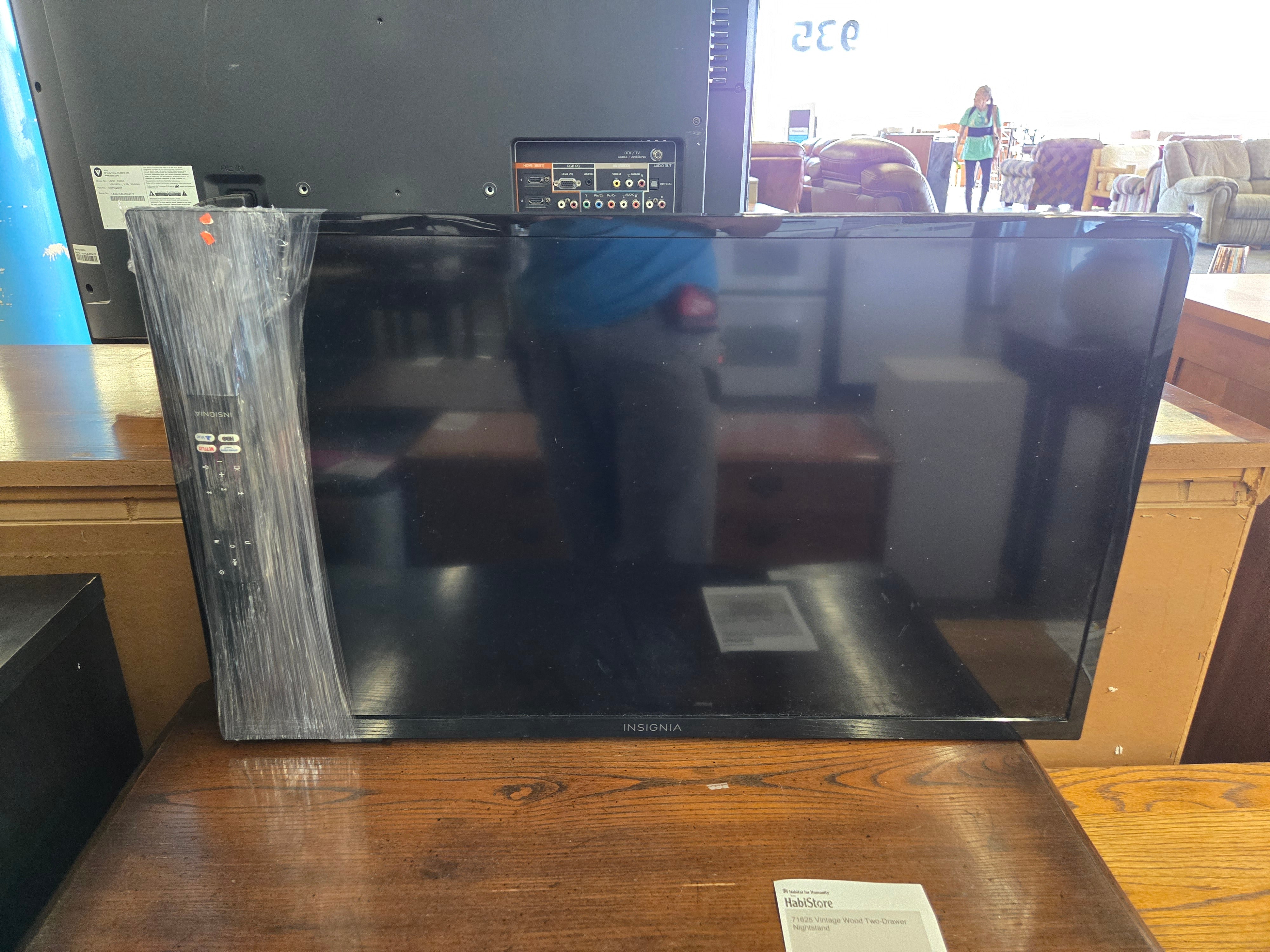 This Insignia 32-inch LED TV features a sleek, black finish that fits into any modern living room or office setting. Its flat-panel technology ensures vivid colors and crisp clarity for an engaging viewing experience. Approximate Size: 1.5 x 2.5 x 0.3