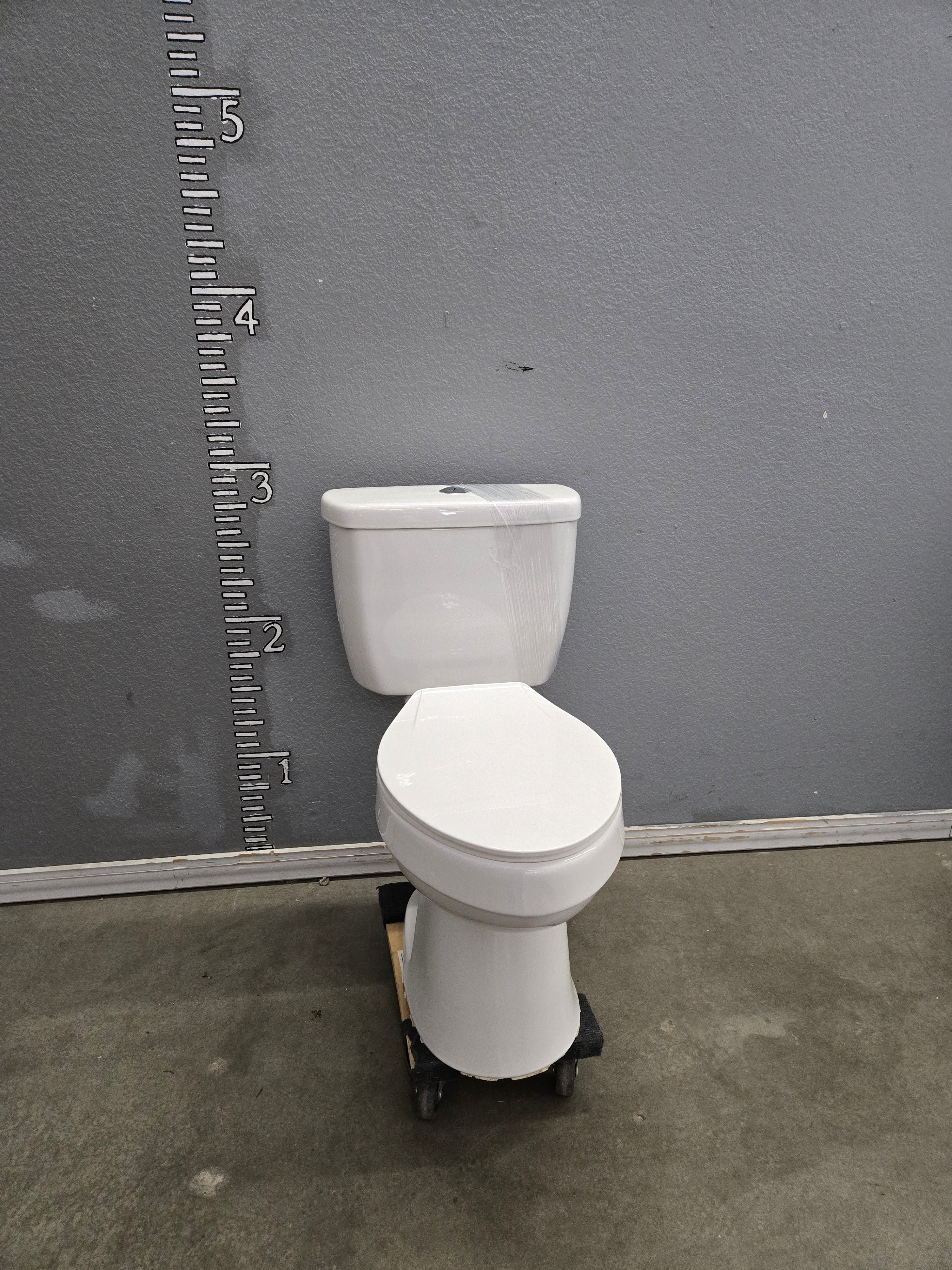 This is a classic, white ceramic toilet with a sleek glazed finish. It features a modern design ideal for updating your bathroom with a fresh look. Approximate Size: 2.5 x 1.5 x 2