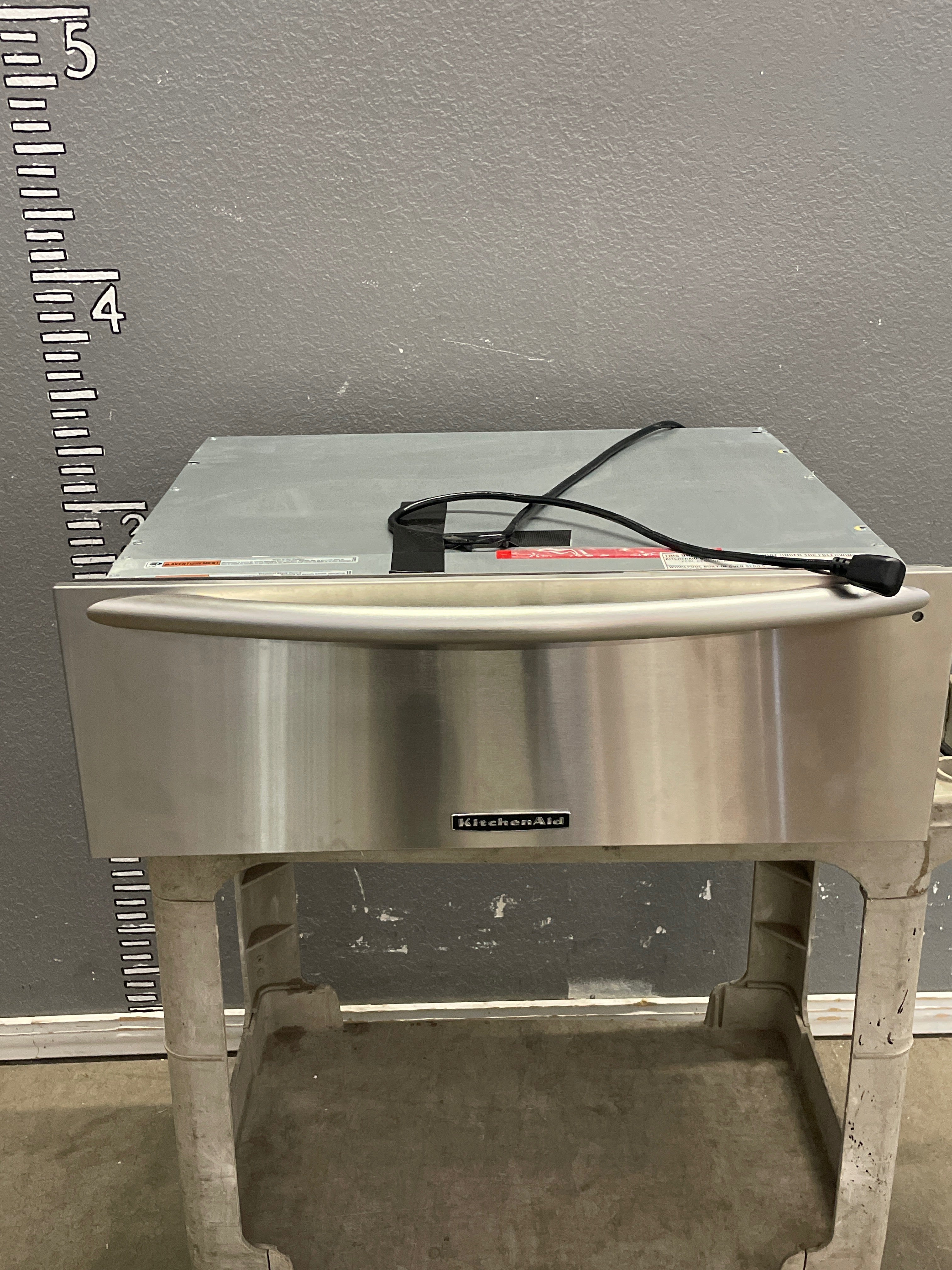This KitchenAid warming drawer features a sleek stainless steel finish, perfect for keeping your dishes warm and ready to serve. Its modern design complements any kitchen decor. Approximate Size: 0.5 x 2.5 x 2.25