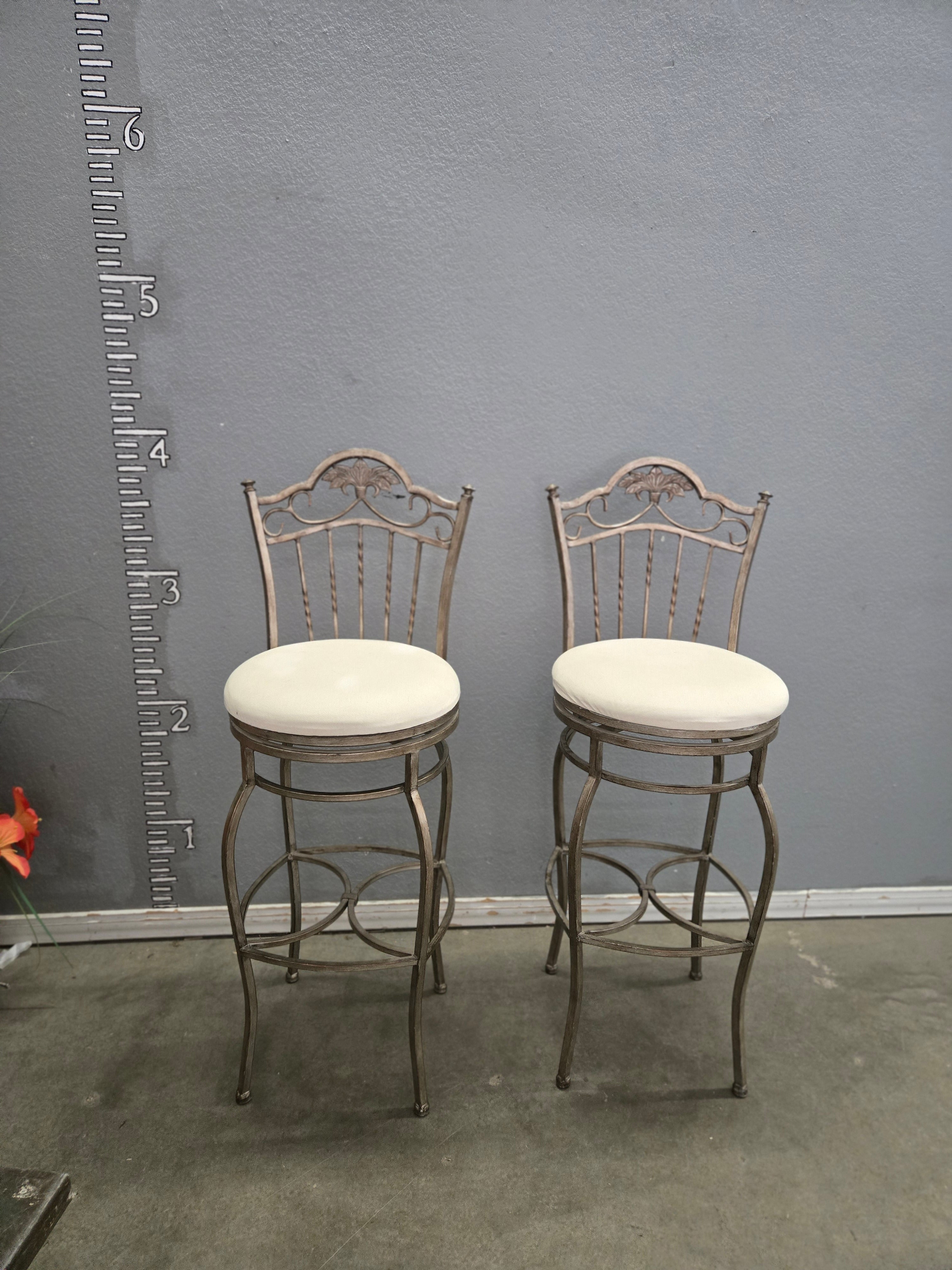 00885 Set of Two Elegant Metal Bar Stools with Cushioned Seats