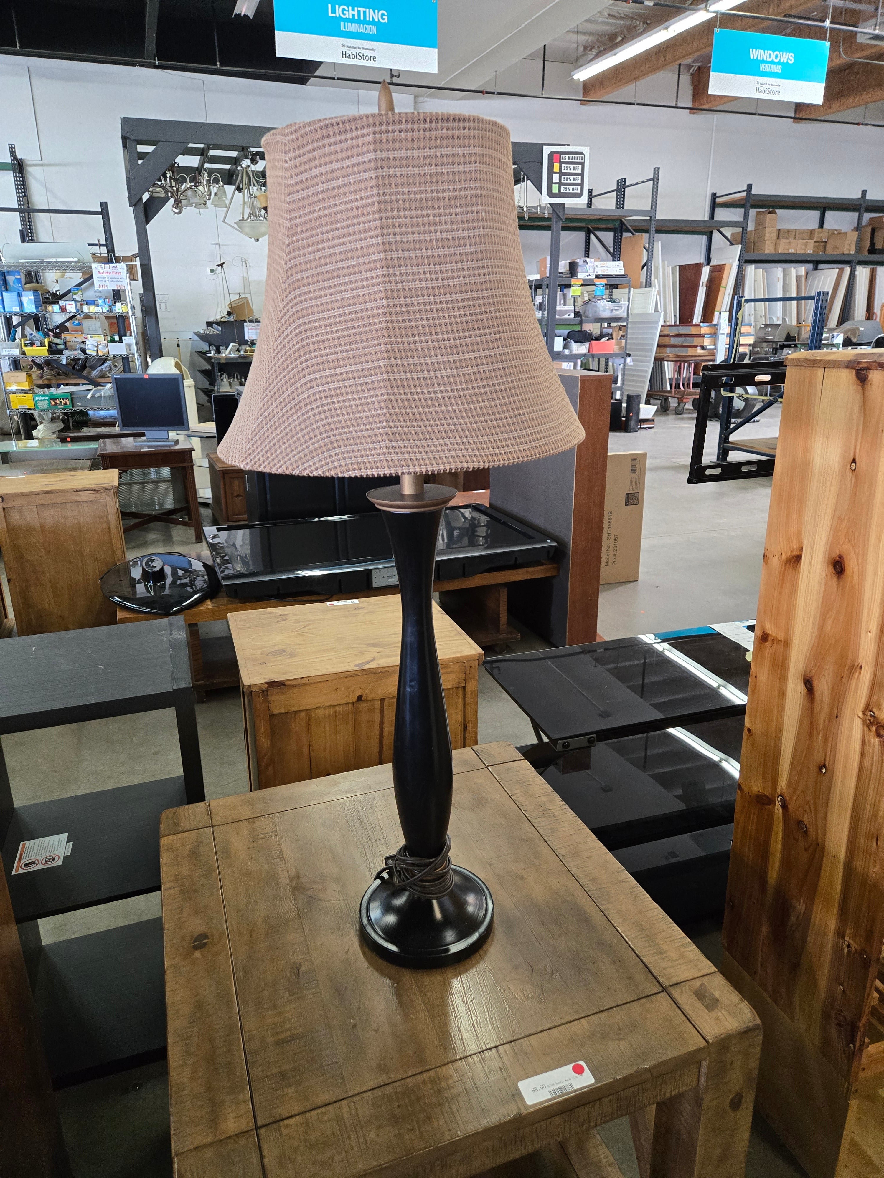 80315 Elegant Black Table Lamp with Textured Beige Shade - 30 Day Guarantee !