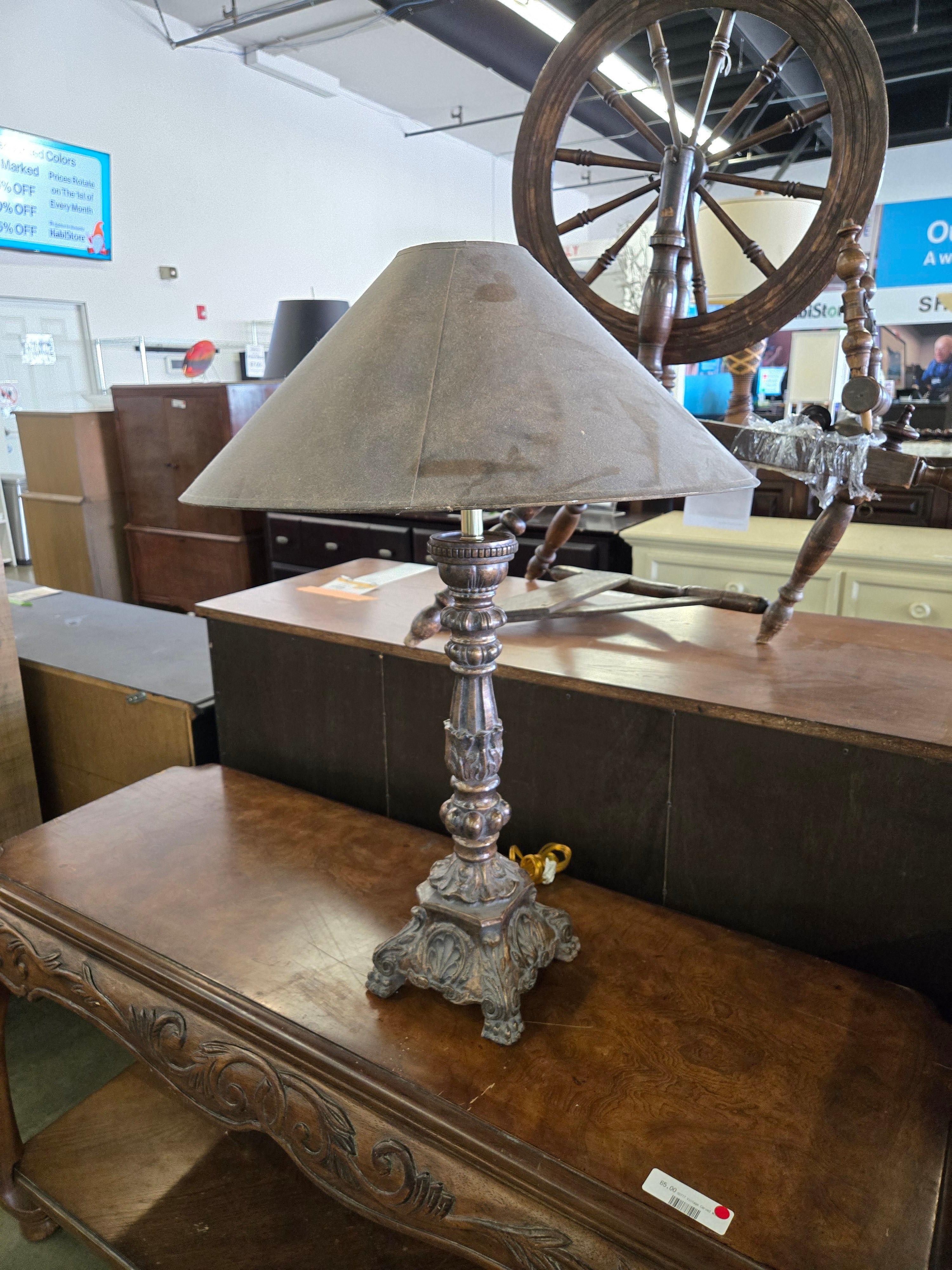 18062 Vintage Ornate Table Lamp with Brown Fabric Shade - 30 Day Guarantee !