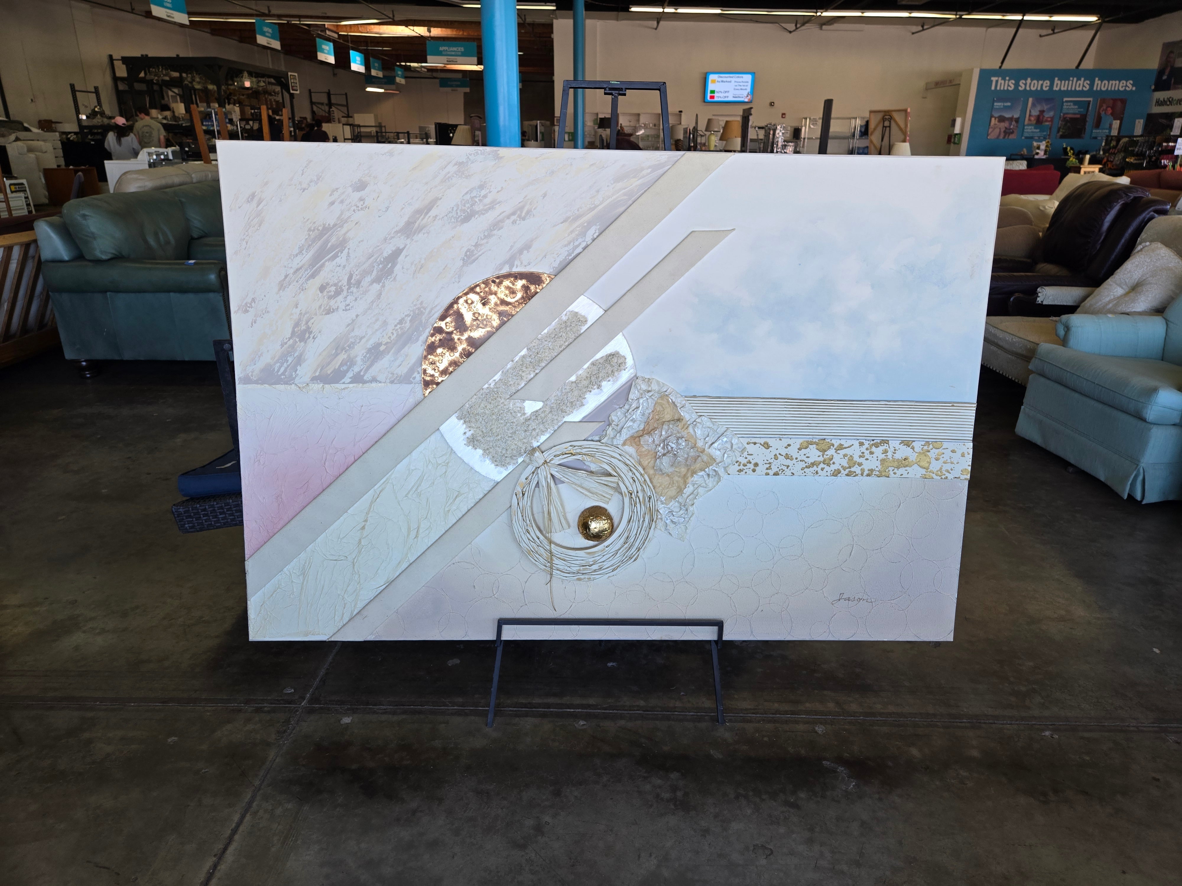 This stunning abstract piece features a harmonious blend of soft pastel colors with a textured finish, creating a sophisticated and modern aesthetic. Perfect for enhancing any living space. Approximate Size: 4 x 6 x 0.1