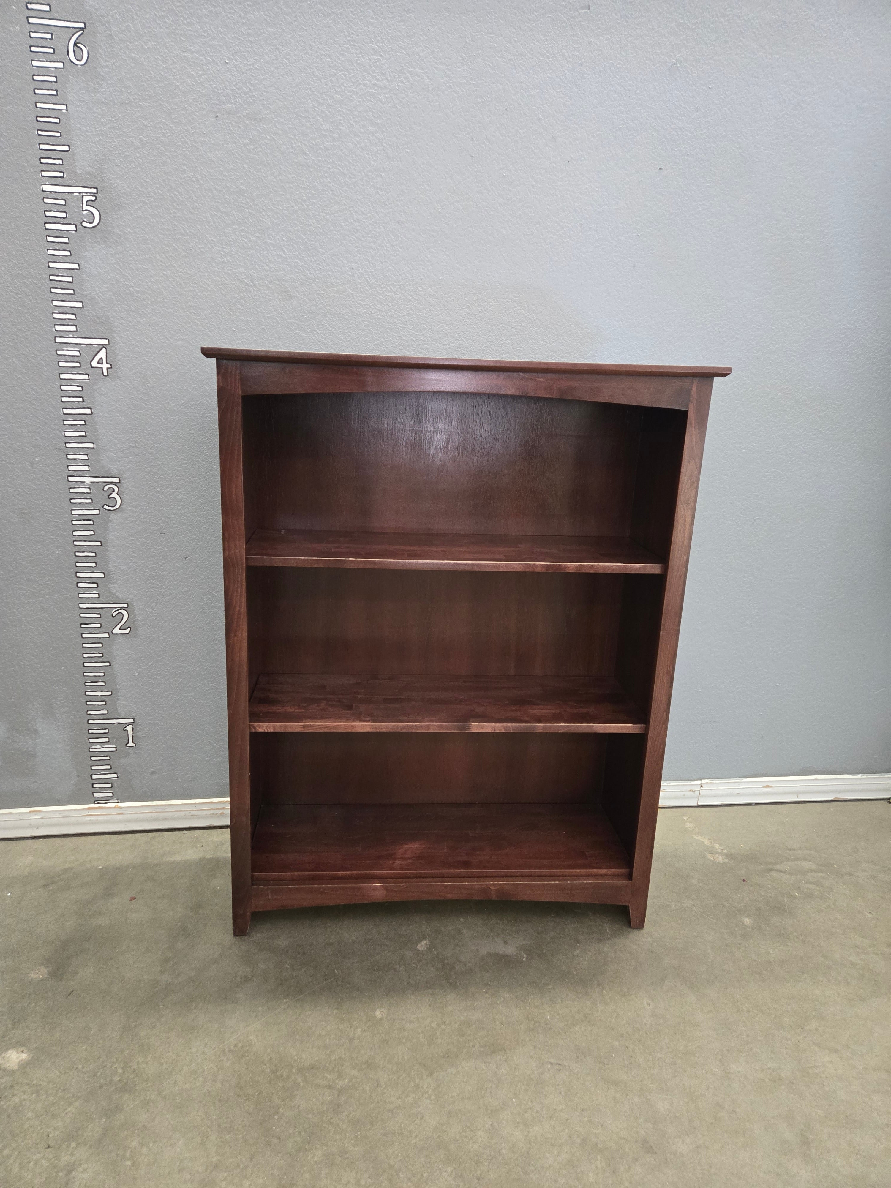 This elegant bookcase features a rich mahogany finish with three spacious shelves. Ideal for organizing books or displaying decorative items. Approximate Size: 4 x 2.5 x 1