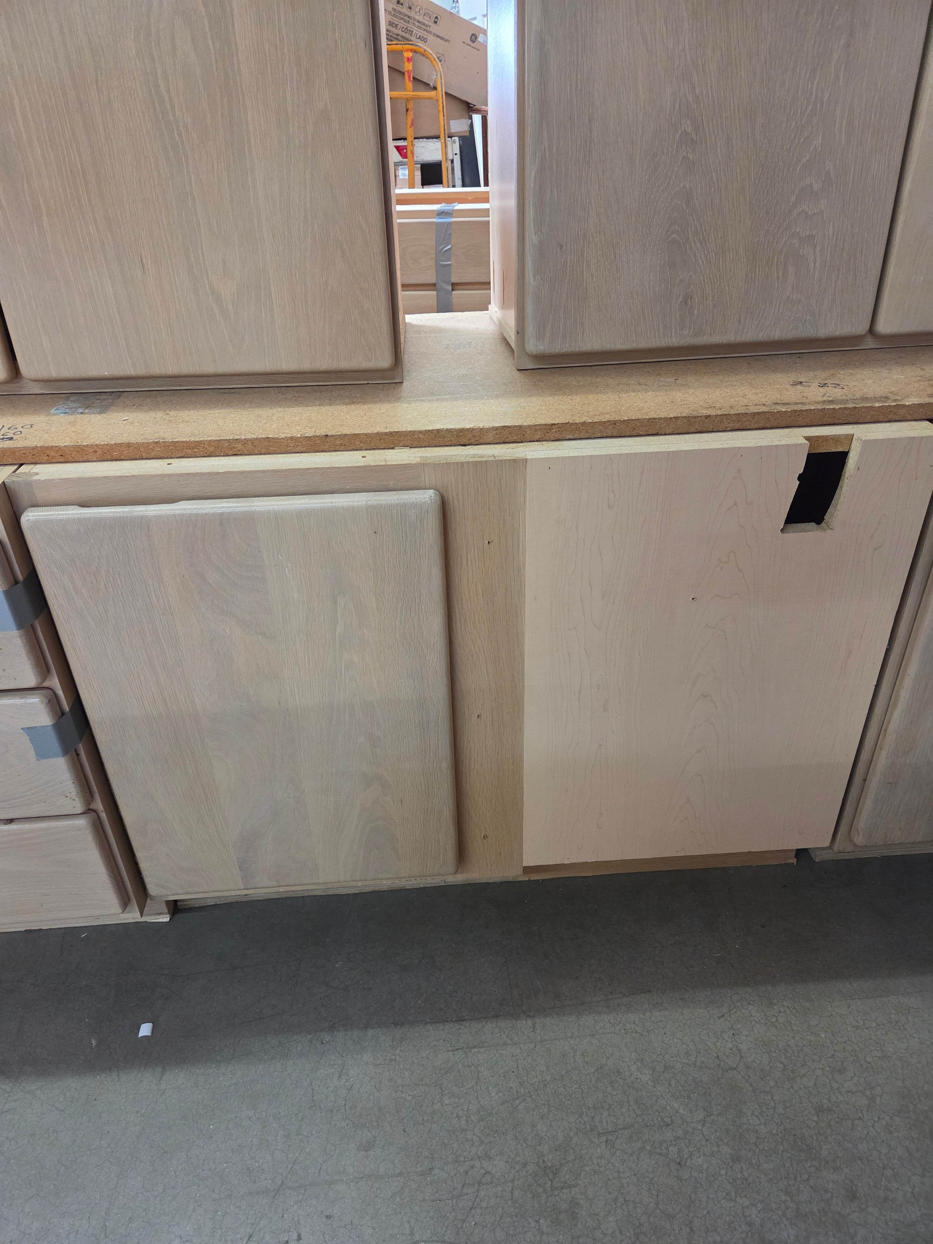 These kitchen cabinet feature a natural wood finish with a smooth texture. The light wood color adds a warm and classic touch to any kitchen décor. Approximate Size: 2.5 x 3 x 1.5