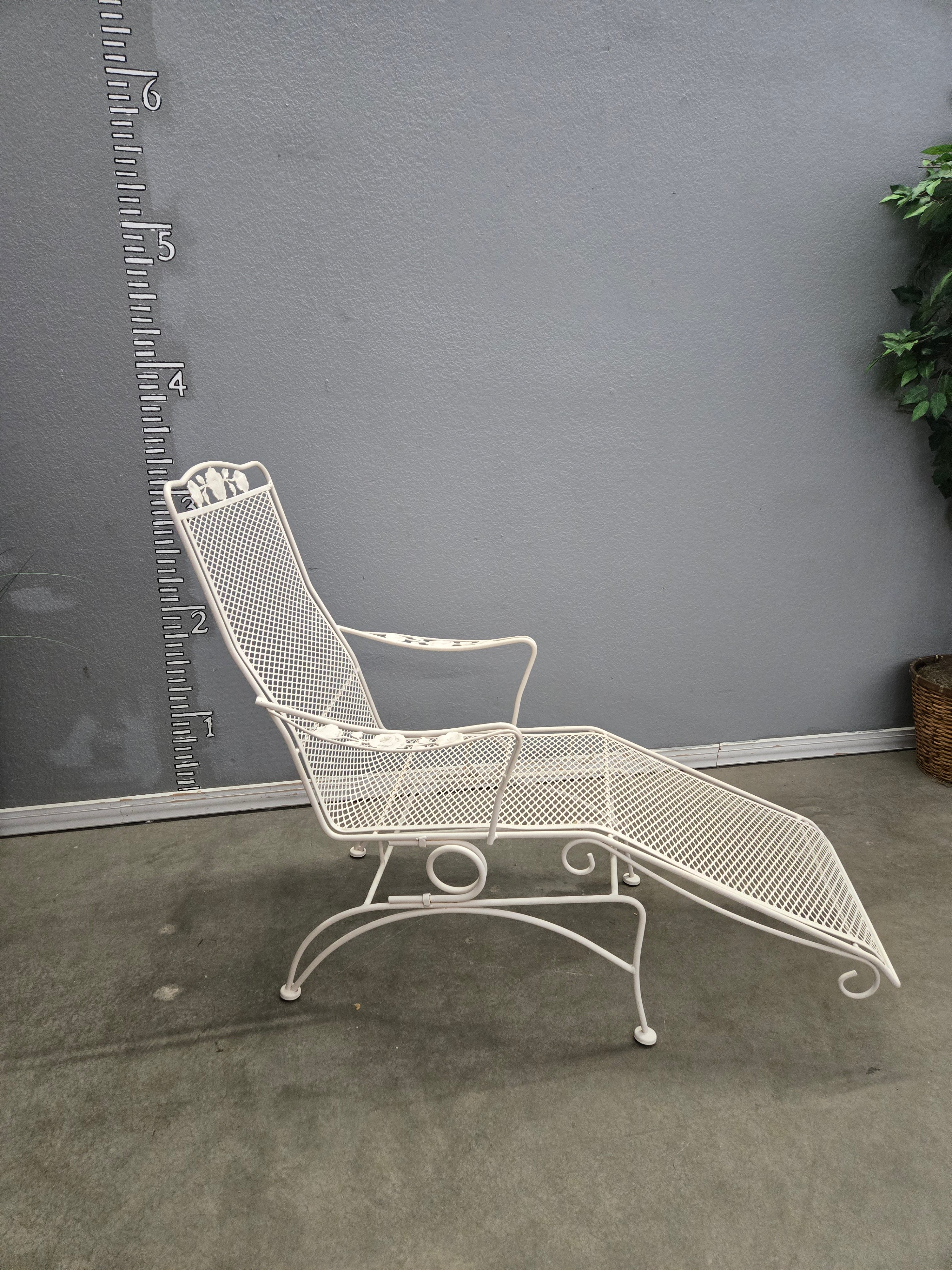23027 Vintage White Metal Outdoor Chaise Lounge