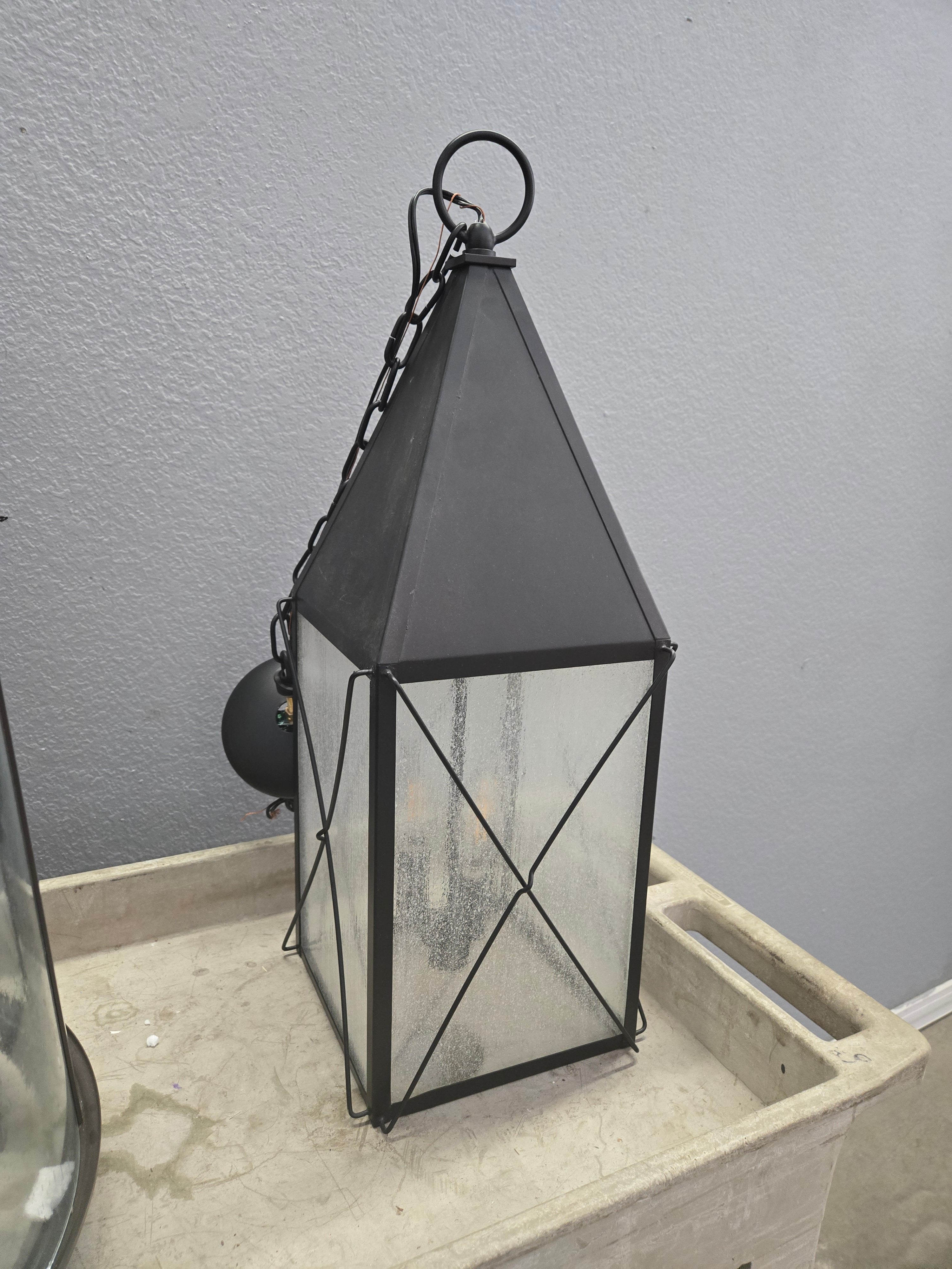 55195 Vintage Black Metal Lantern with Glass Panels - 30 Day Guarantee !